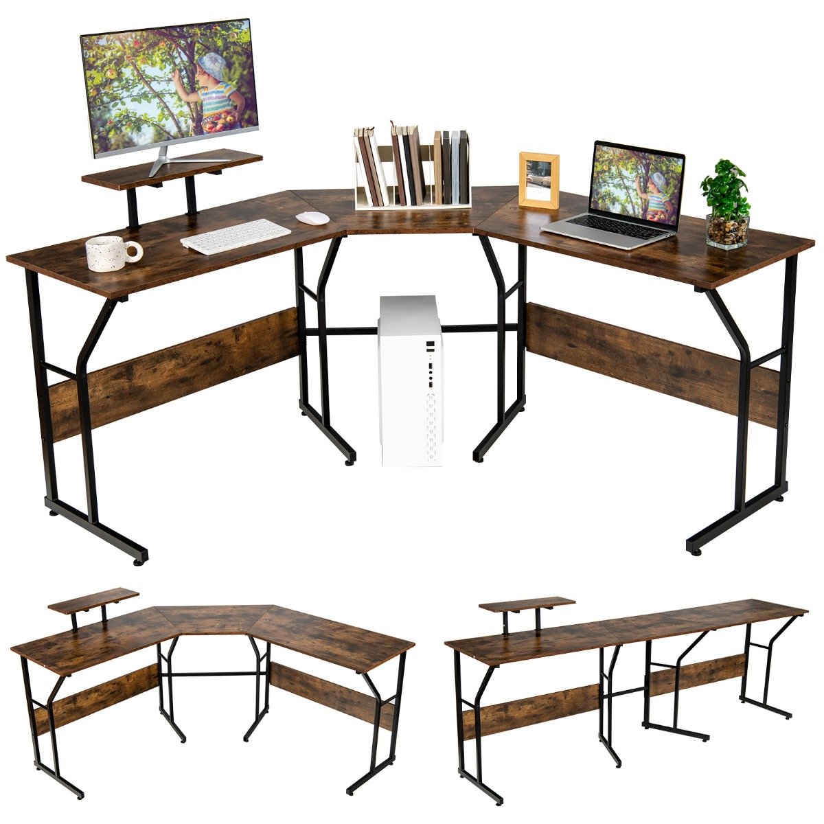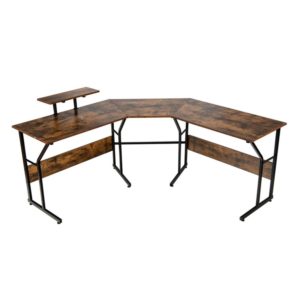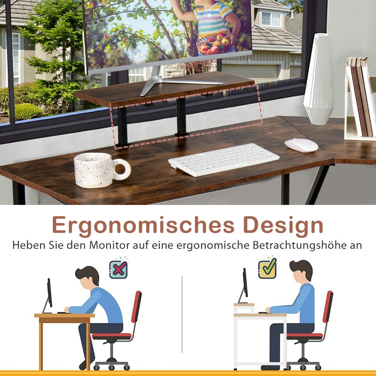 L formos kampinis rašomasis stalas su monitoriaus laikikliu (Ruda)