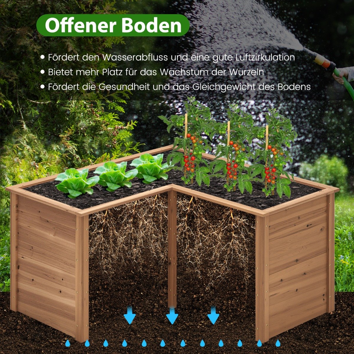 Padidinkite savo sodininkystės malonumą su šia funkcionalia ir stilinga lauko daržo lysve! Jos L formos dizainas ir didelis dydis suteikia pakankamai erdvės jūsų mėgstamoms gėlėms, žolėlėms ar daržovėms auginti.