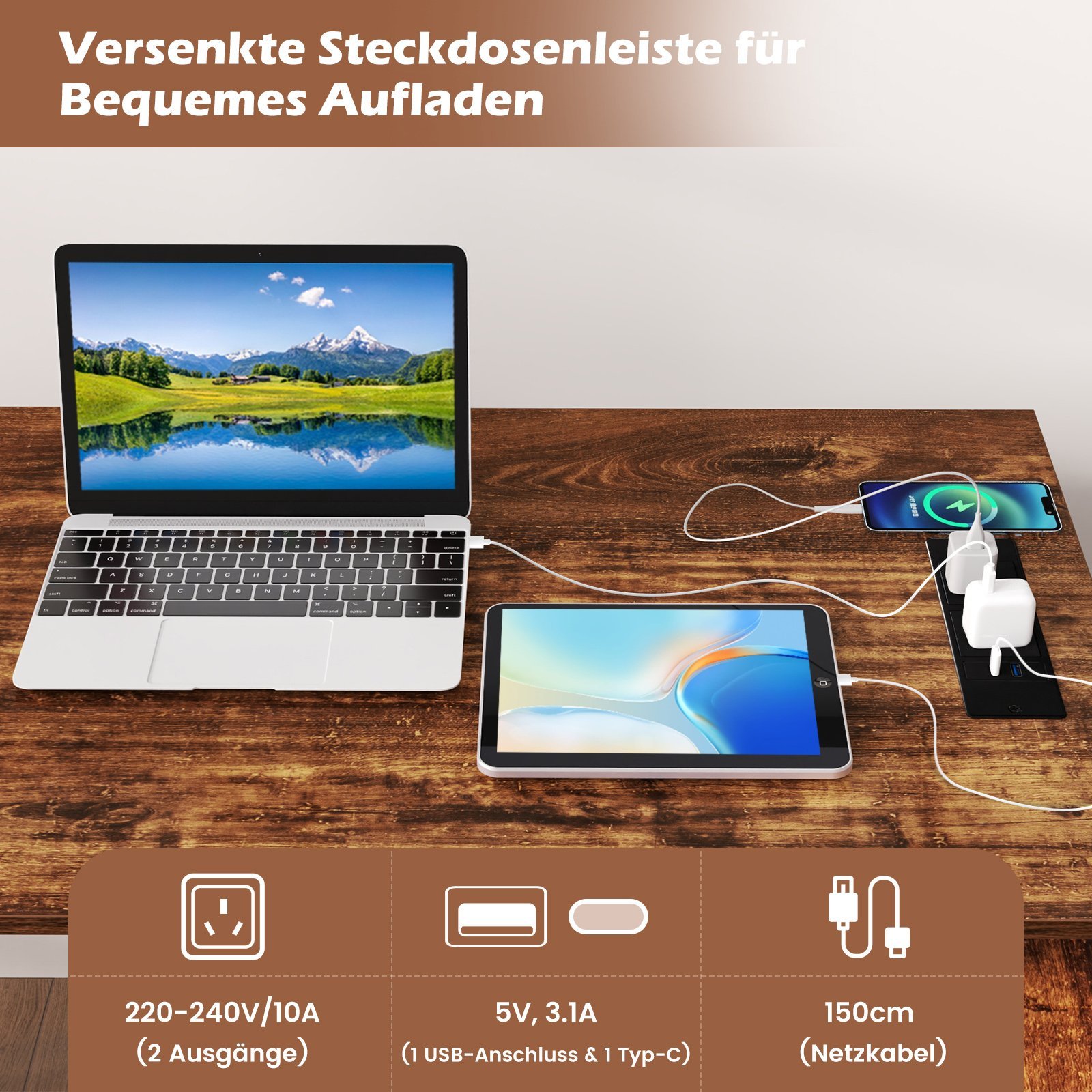 - Integruota įkrovimo stotelė: Su 2 elektros lizdais, 1 USB ir 1 C tipo jungtimi, patogiam įrenginių įkrovimui.