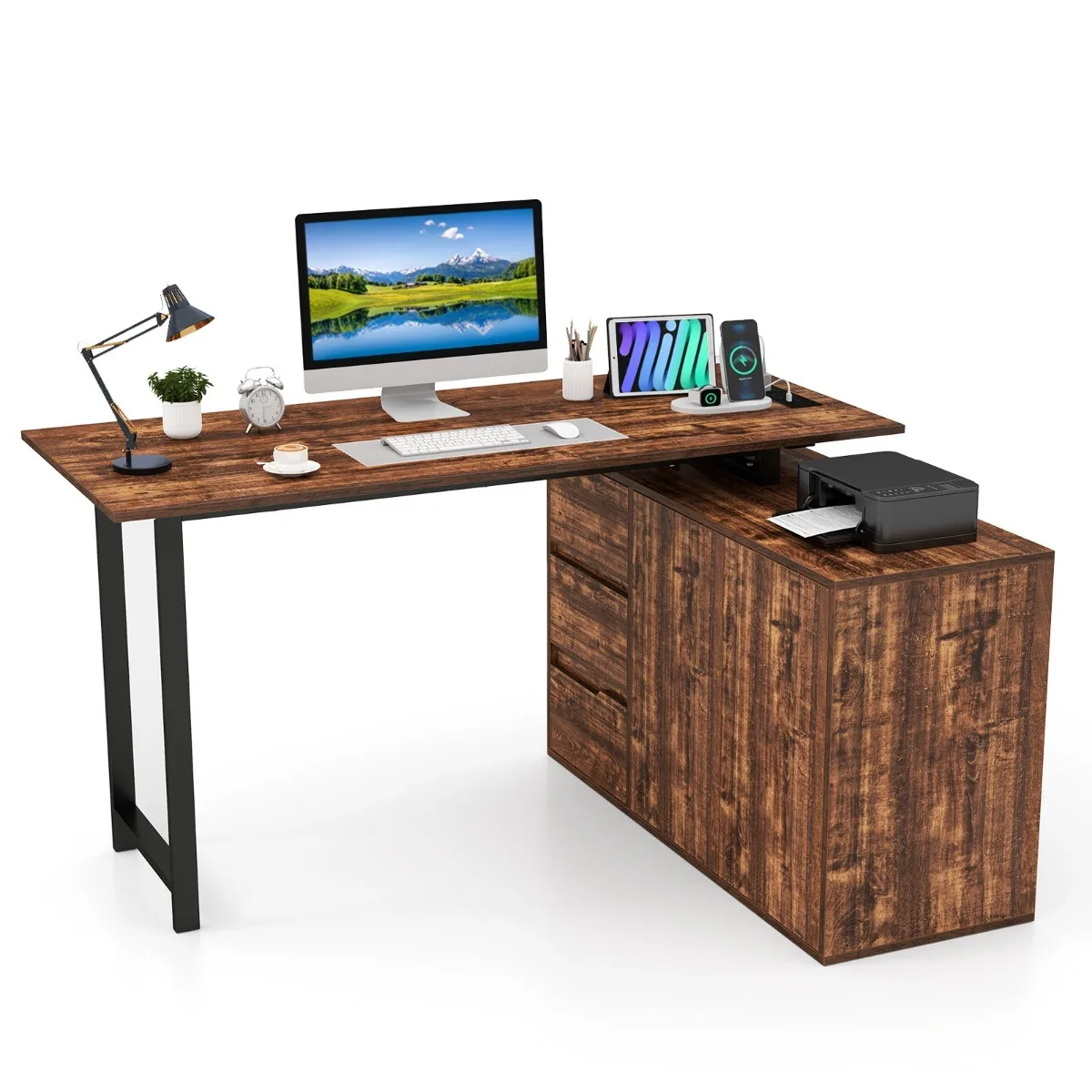 L-formos rašomasis stalas su integruotu elektros lizdu ir dvejopa montavimo galimybe (Kaimiška ruda)