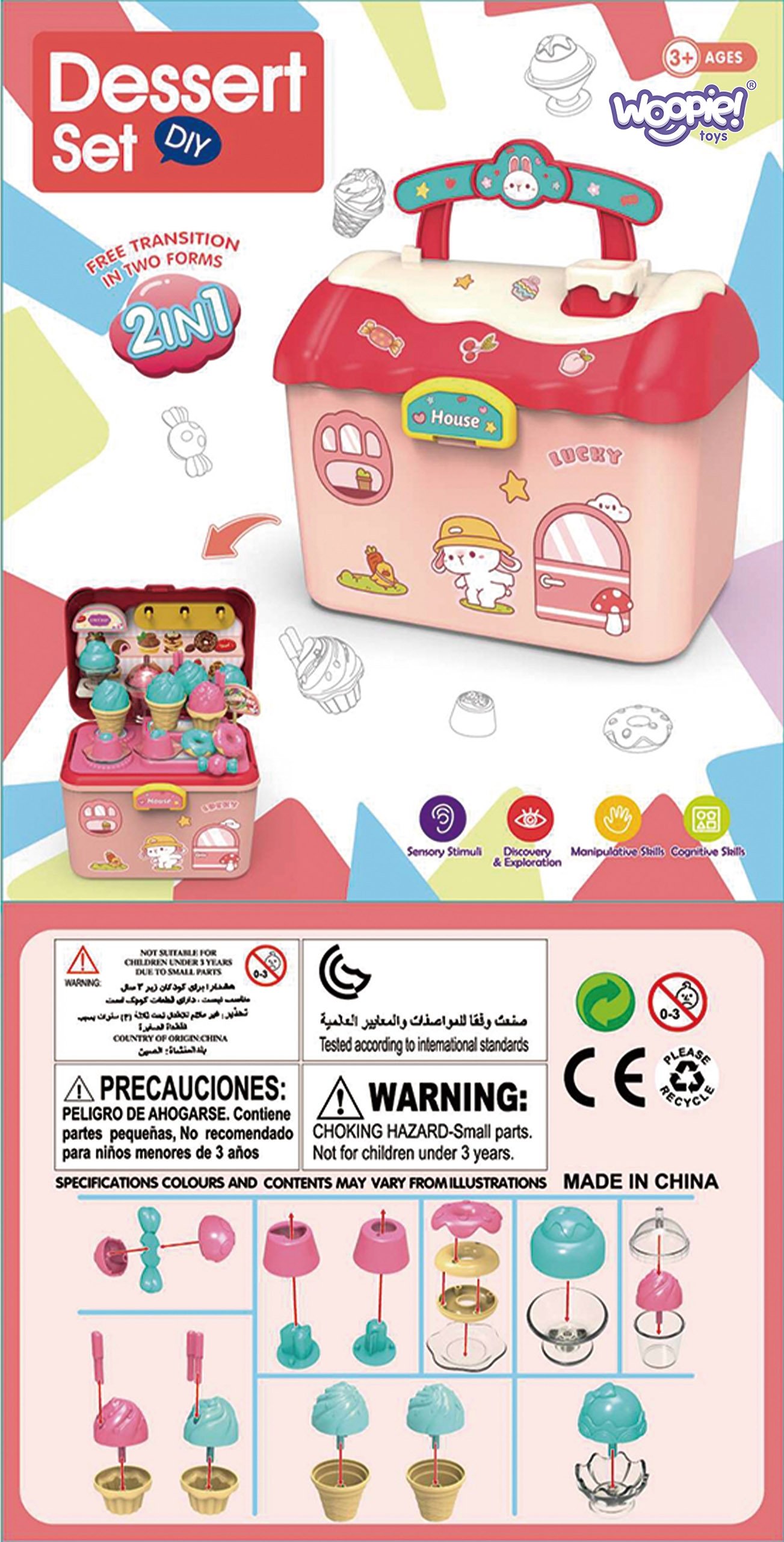 - Rinkinį sudaro 16 elementų: lagaminėlis, ledai, desertai, kokteilis, spurgos, saldainiai, keksiukai ir kiti priedai.