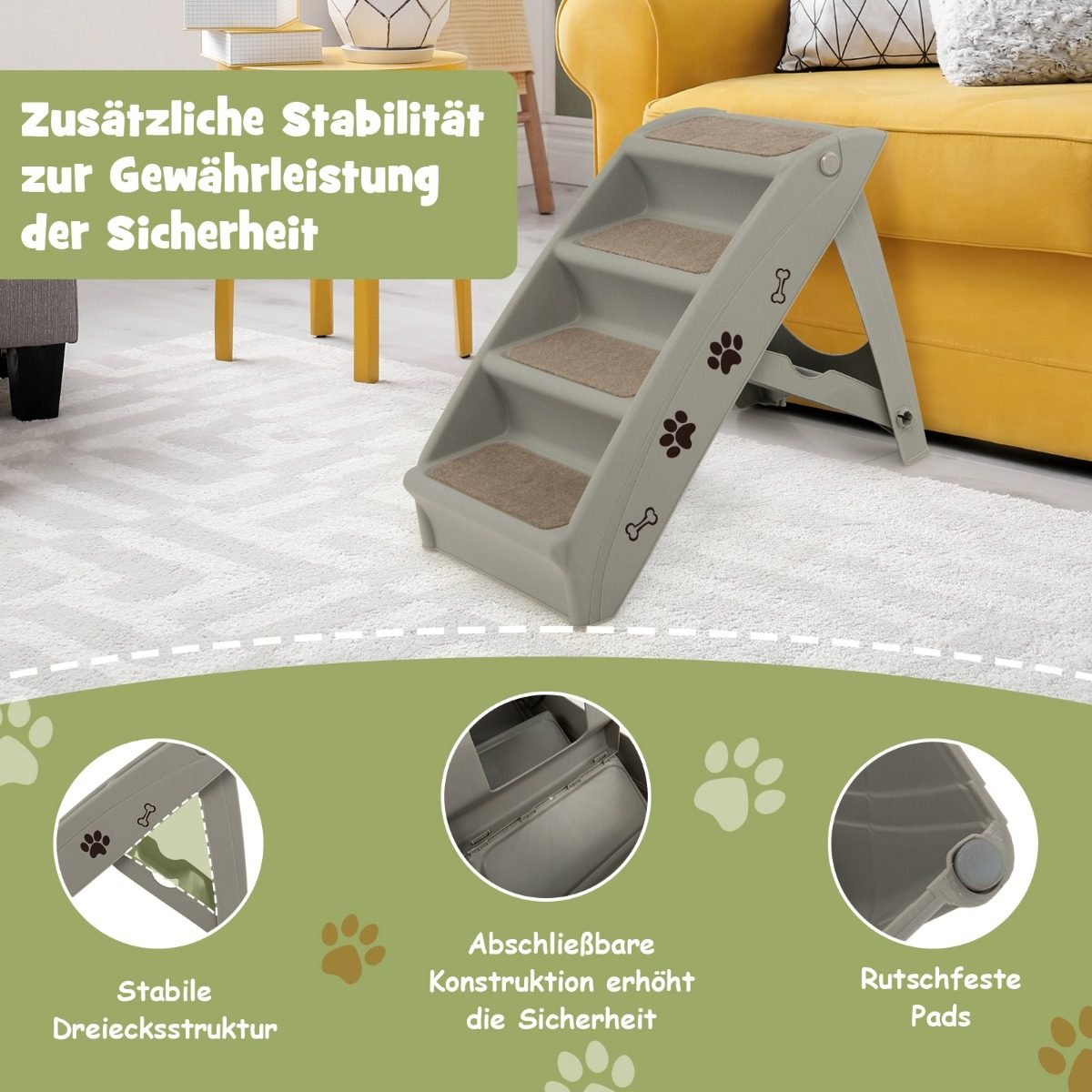 Laiptukai augintiniams su 4 pakopomis sulankstomi (Pilka)