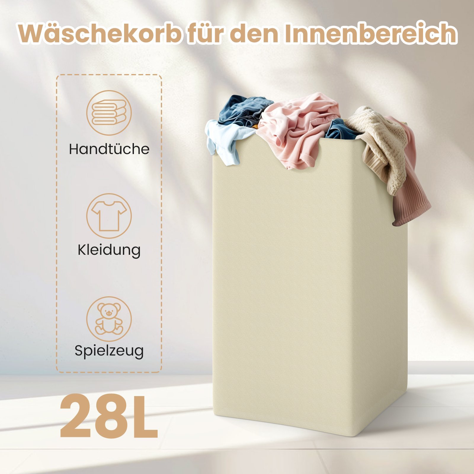 - Talpus, 34 litrų tūrio vidus puikiai tinka nešvariems skalbiniams, rankšluosčiams ar žaislams laikyti.