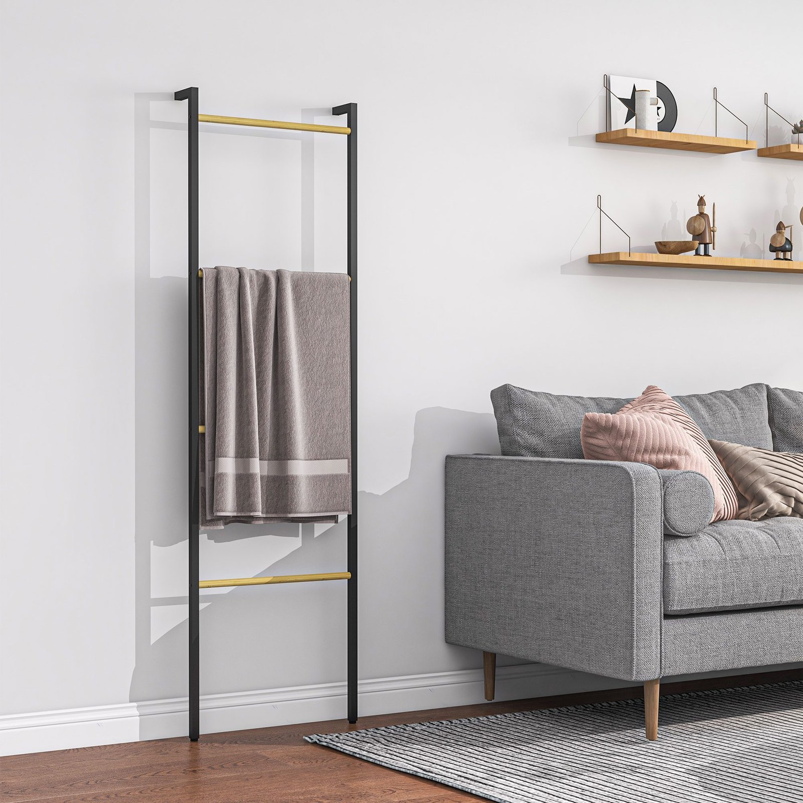 Laisvai pastatomas 4 strypų rankšluosčių stovas