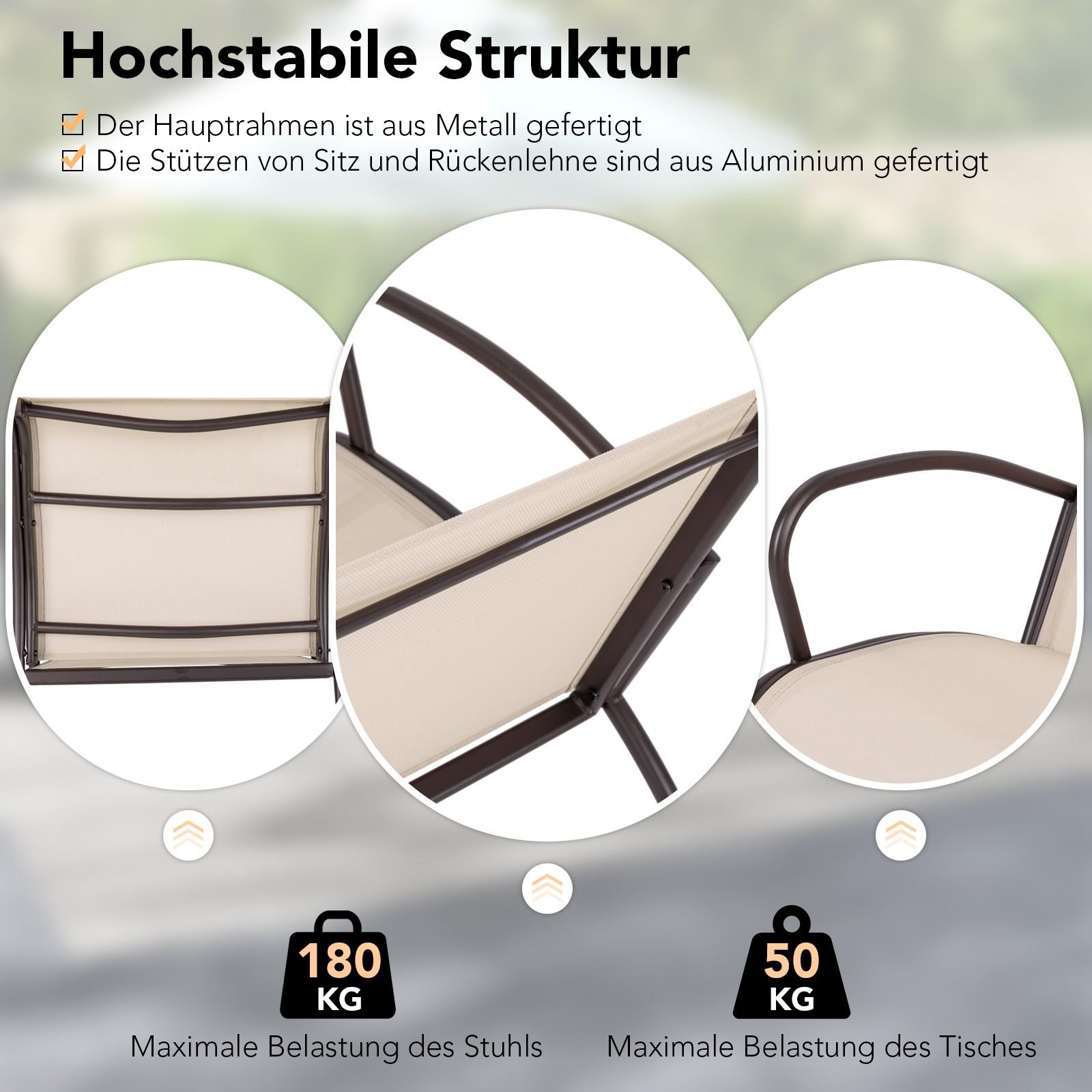 - Kiekvienos kėdės keliamoji galia: 180 kg
