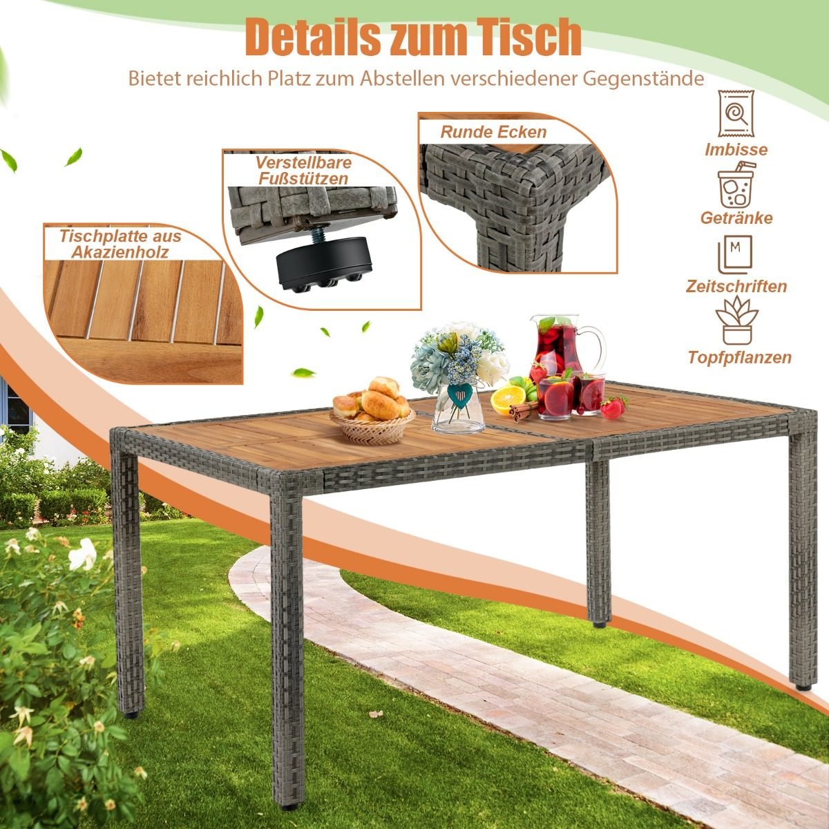 Lauko baldų komplektas: stalas ir 6 kėdės (Pilka)