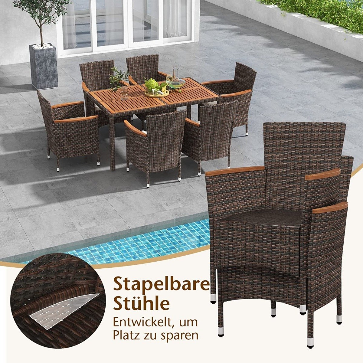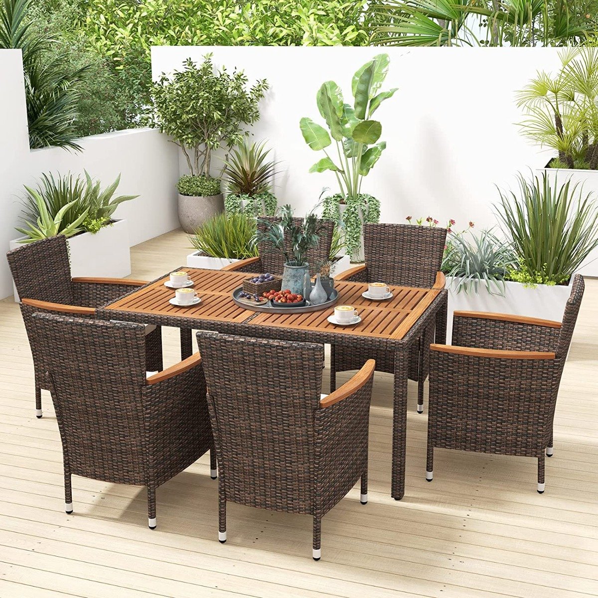 Lauko baldų komplektas: stalas su akacijos medžio stalviršiu ir šešios kėdės (Ruda)