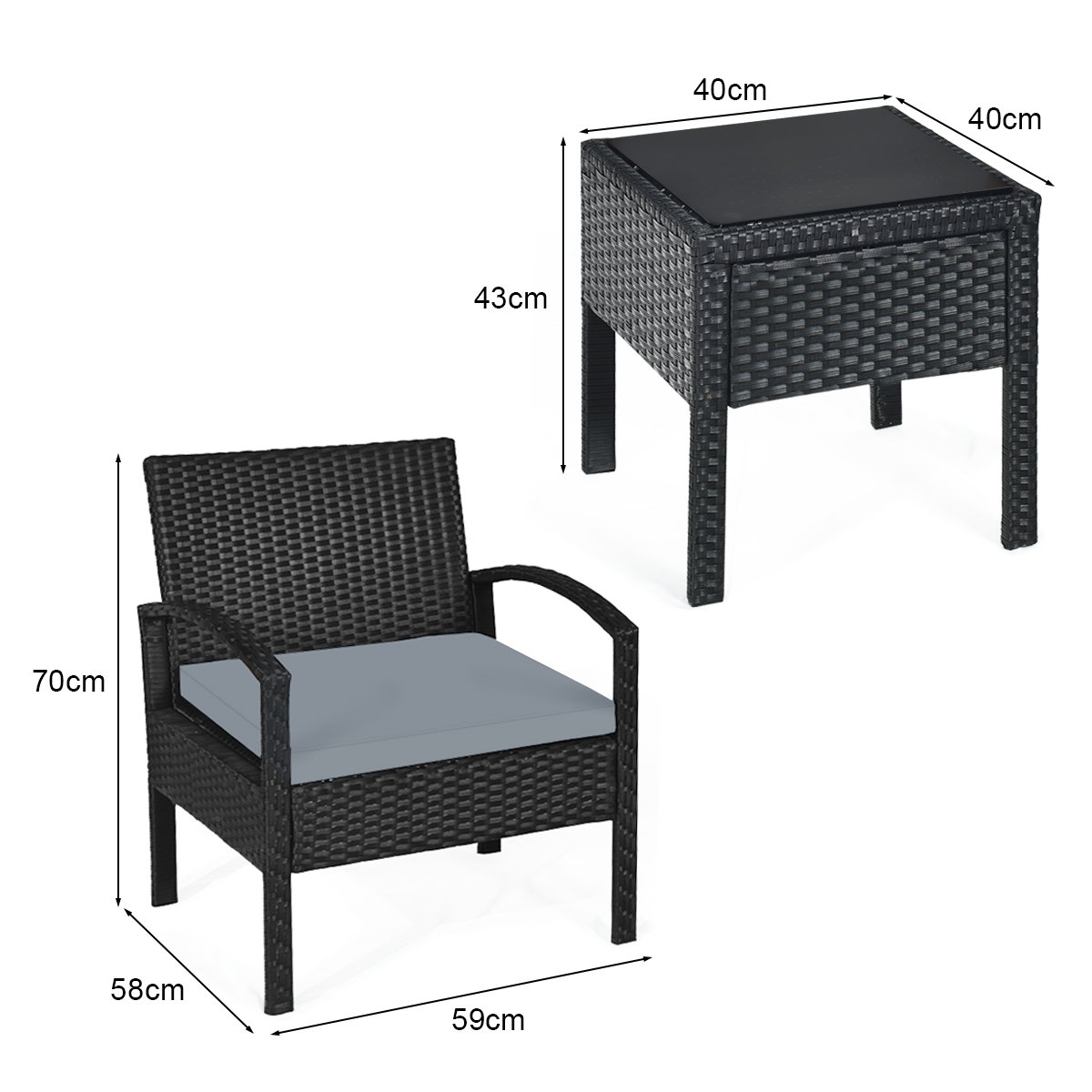 - Matmenys (kėdė): 59 x 58 x 70 cm (Ilgis x Plotis x Aukštis)