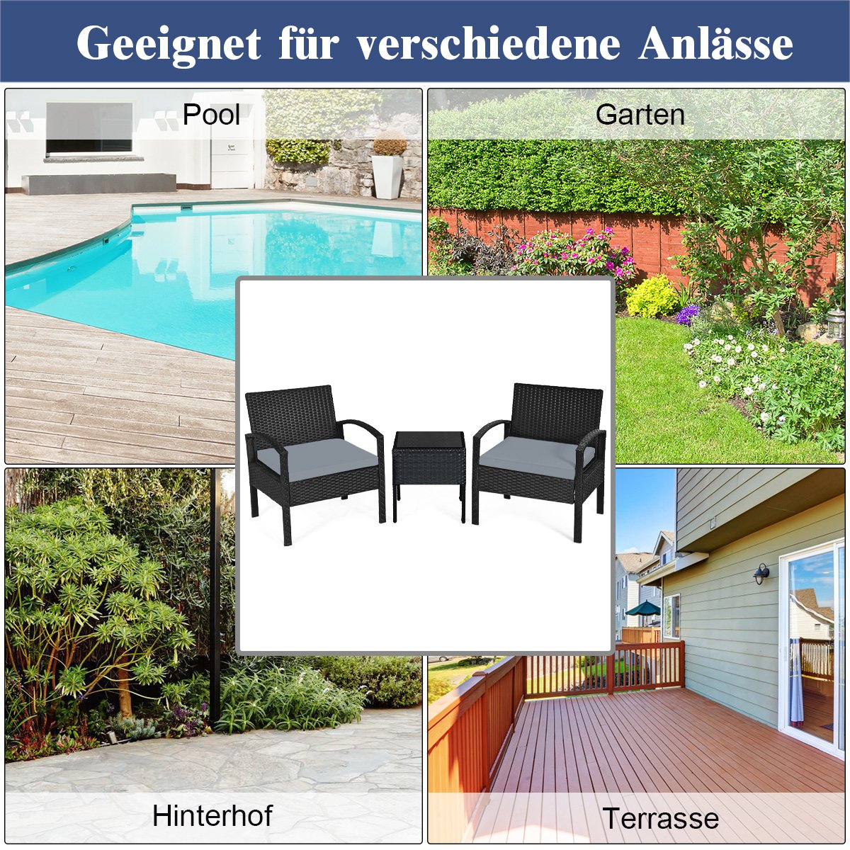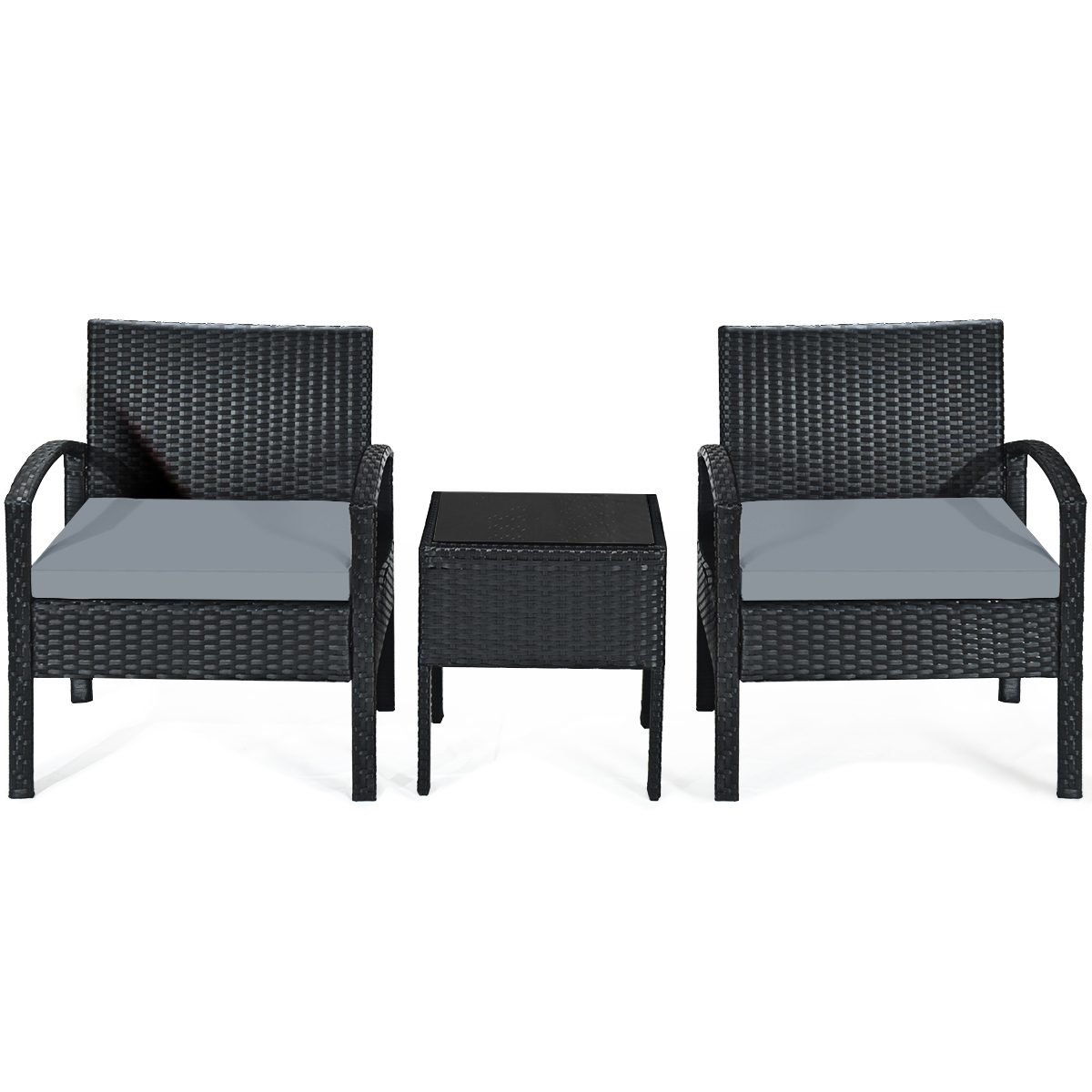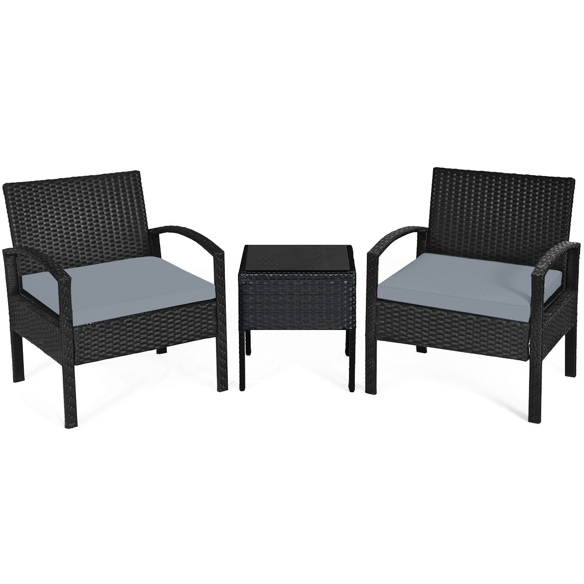 Lauko baldų komplektas su pagalvėmis ir staliuku (Pilka)