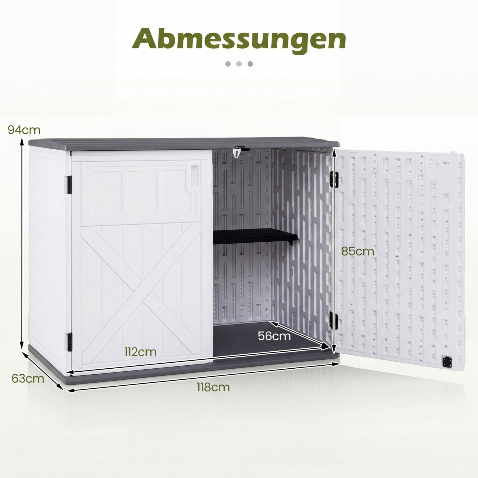 - Vidiniai matmenys (I x P x A): 112 x 56 x 85 cm