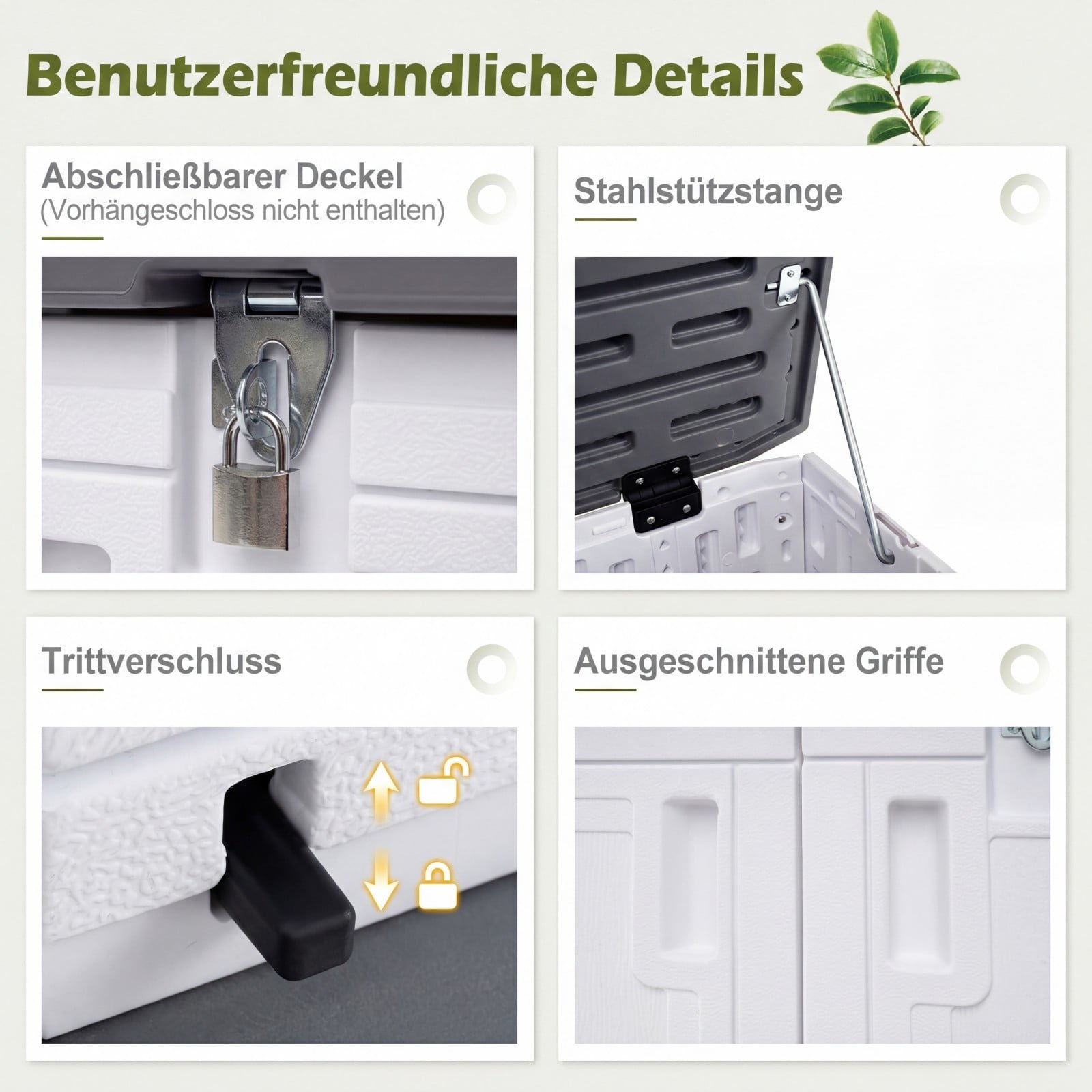 Lauko daiktadėžė su reguliuojama lentyna ir užrakinamu dangčiu (Šviesiai pilka + Balta)