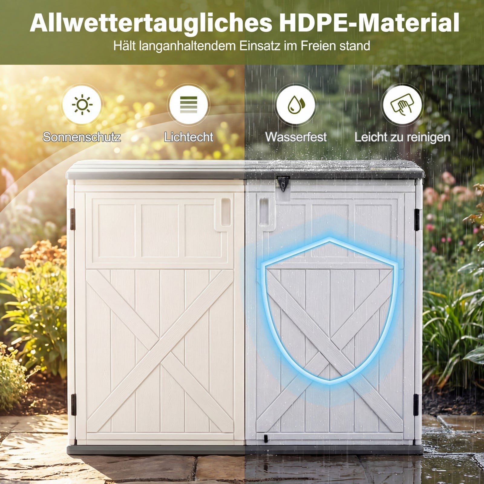 - Pagaminta iš oro sąlygoms atsparaus HDPE, užtikrinančio ilgaamžiškumą ir lengvą priežiūrą.