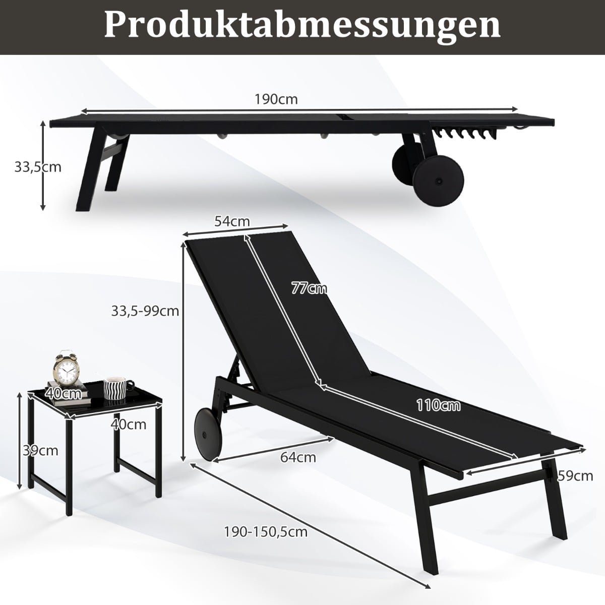 Lauko gultas su reguliuojamu atlošu ir staliuku (Juoda)