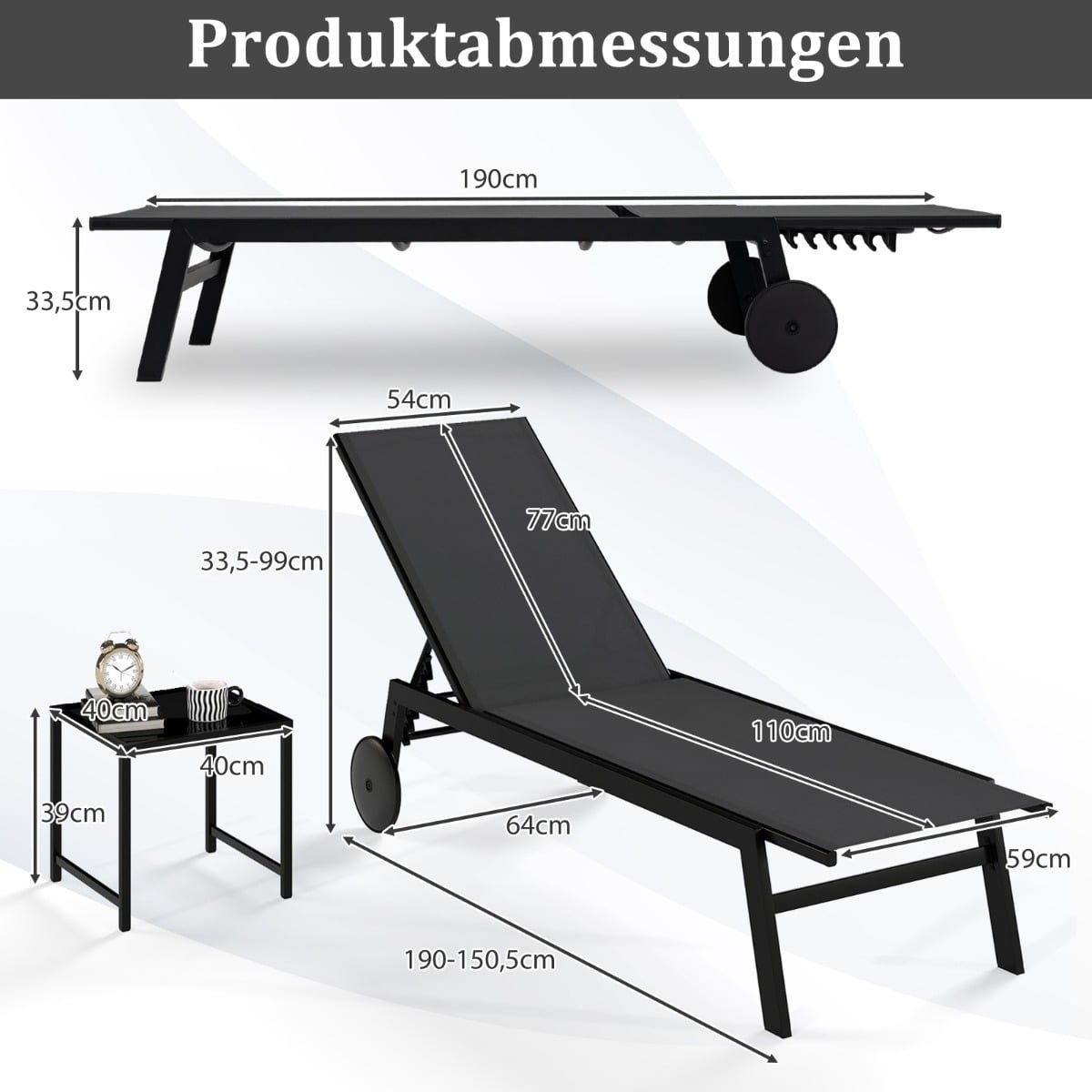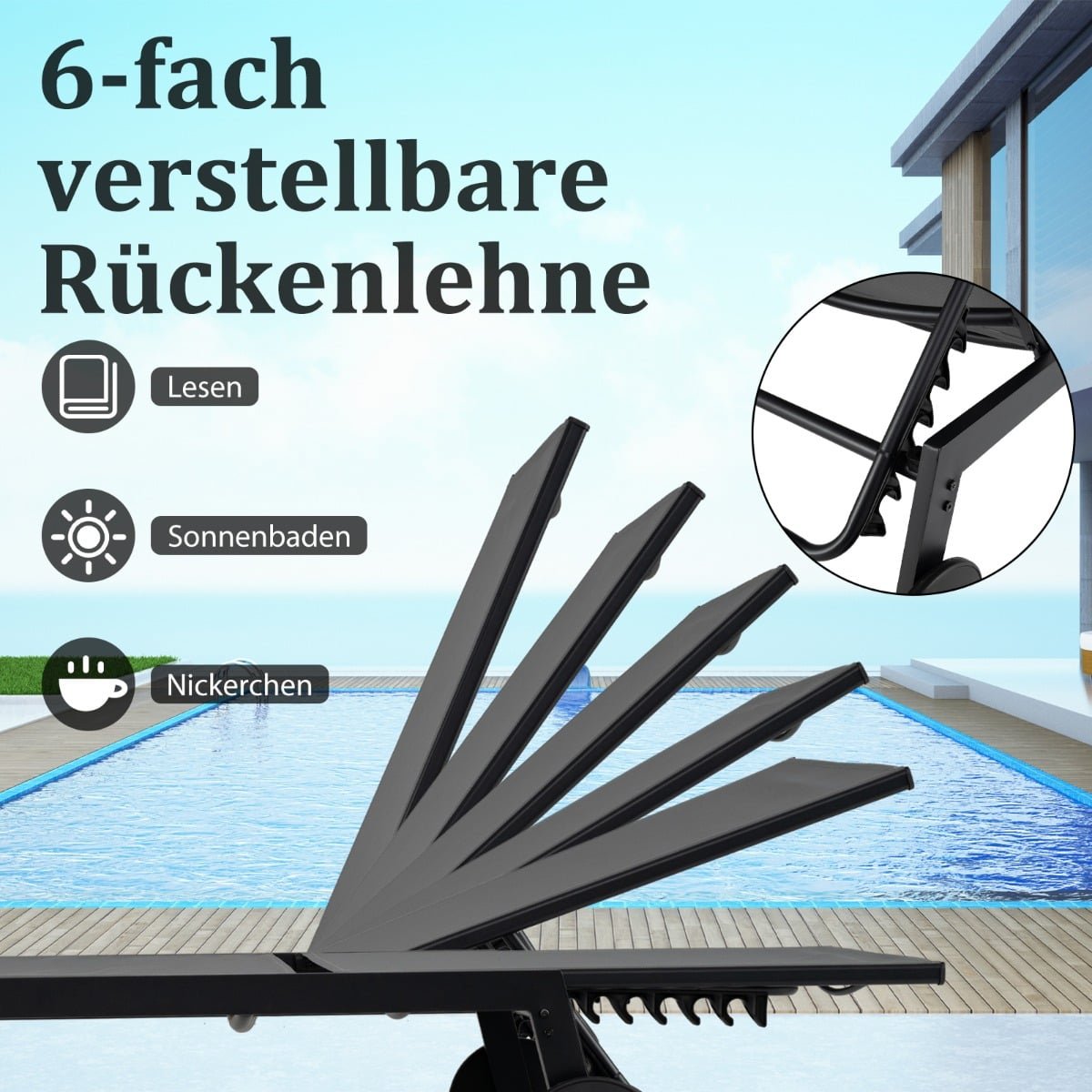 Mėgaukitės atpalaiduojančiomis akimirkomis lauke su mūsų 2 dalių gultų komplektu. Kiekvienas iš šio komplekto gultų turi šešių padėčių reguliuojamą atlošą, leidžiantį visada pasirinkti tobulą kampą – nesvarbu, ar mėgaujatės saule, ar skaitote prie baseino. Kvėpuojantis ir greitai džiūstantis audinys užtikrina puikią oro cirkuliaciją bei komfortą karštomis dienomis, o sklandžiai riedantys ratukai leidžia jį be vargo perkelti ten, kur reikia.