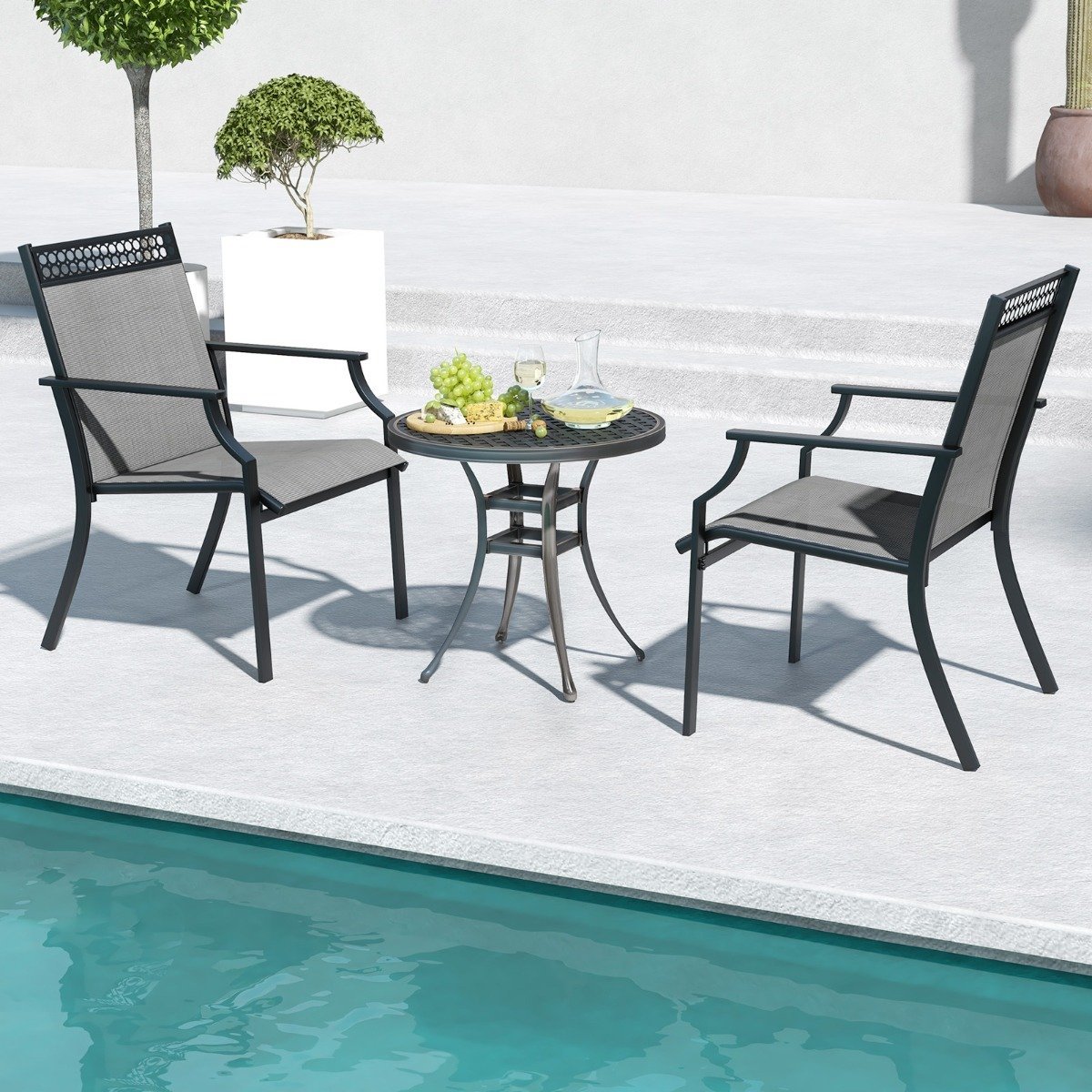 Pagerinkite savo laisvalaikį lauke su šiuo aukštos kokybės lauko kėdžių komplektu! Kėdės pagamintos iš kruopščiai atrinkto, greitai džiūstančio audinio, kuris užtikrina ilgaamžiškumą ir patogumą. Tvirtas metalinis rėmas garantuoja stabilumą ir patikimumą.