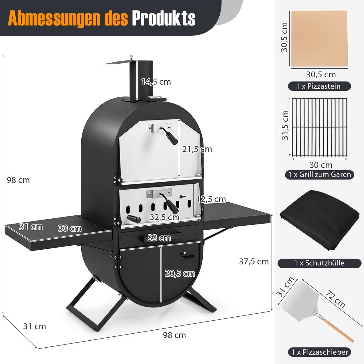 Lauko picos krosnis su šoninėmis lentynomis ir nerūdijančio plieno grotelėmis (Juoda)