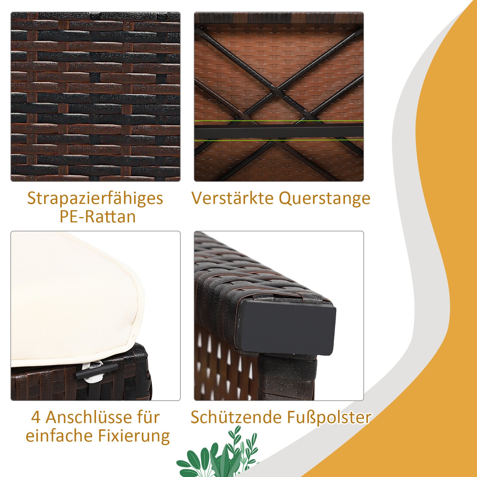 • PE rotango medžiaga atspari oro sąlygoms ir UV spinduliams.