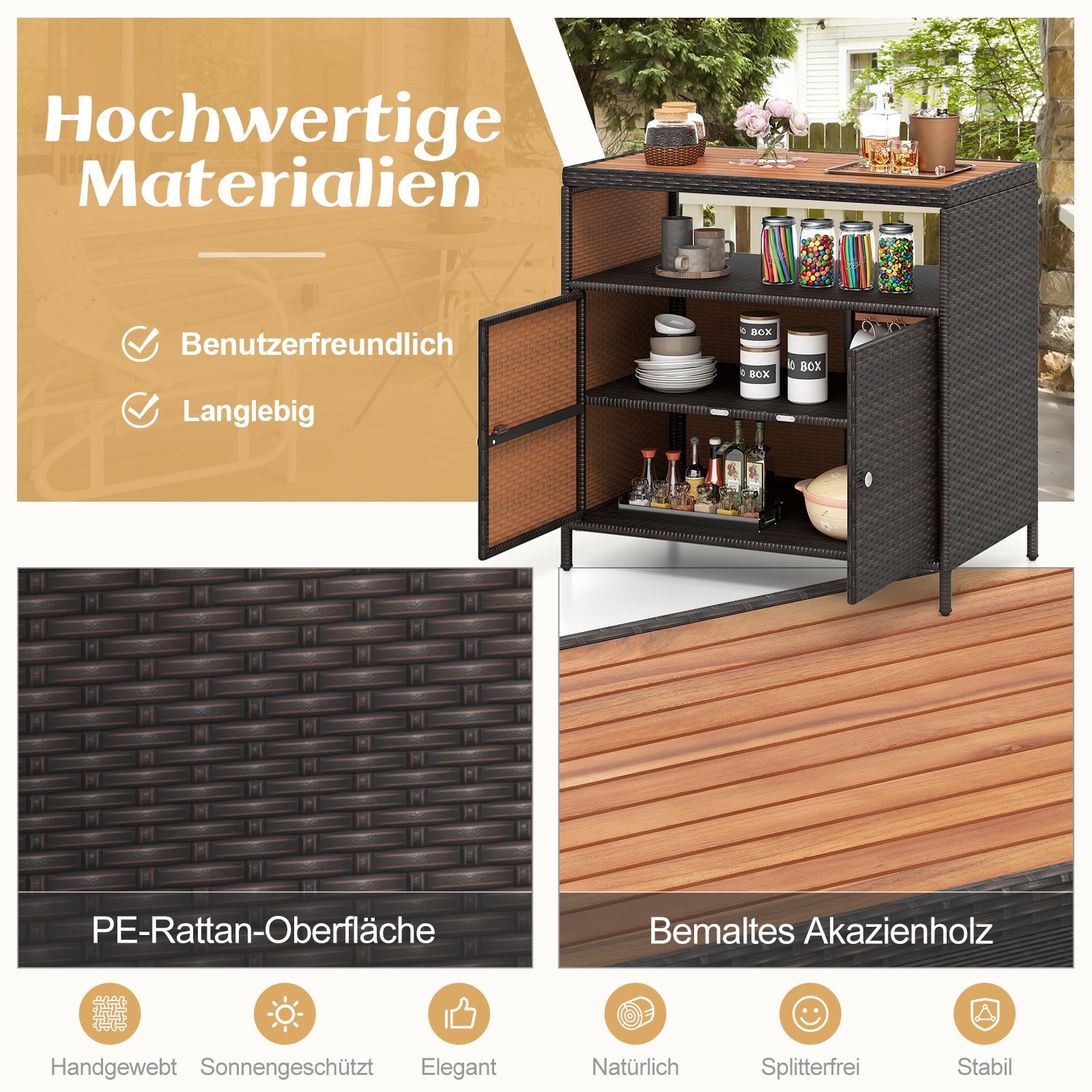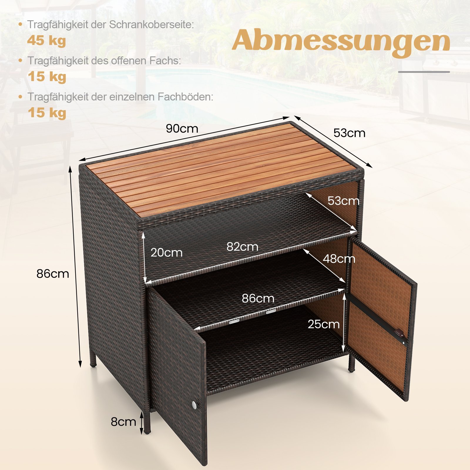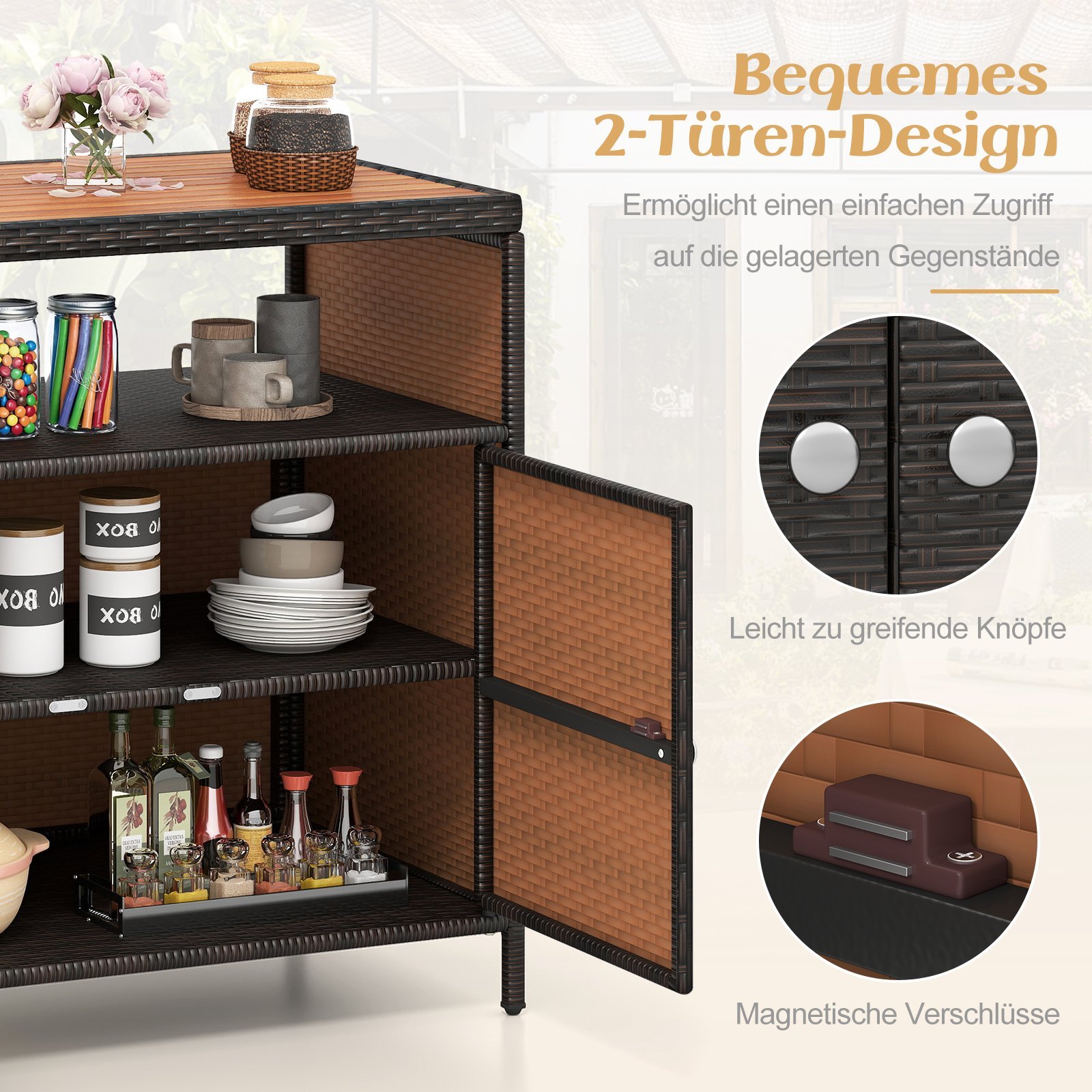 Atraskite naują lauko erdvės organizavimo lygį su šia ratano spintele. Su erdviu stalviršiu, atvira lentyna ir uždaru skyriumi su durelėmis, ši spintelė yra ne tik stilinga, bet ir itin praktiška. Ji puikiai tinka terasoms, sodams ar zonoms prie baseino, suteikdama jūsų lauko erdvei elegancijos ir nepriekaištingos tvarkos.