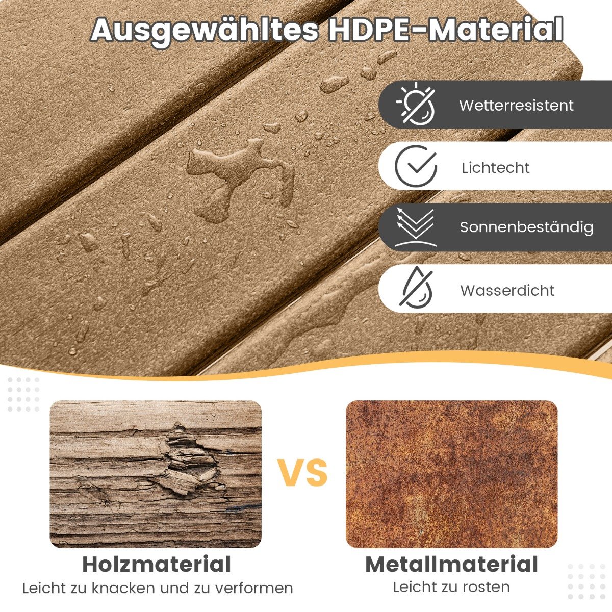 - Pagamintas iš oro sąlygoms atsparaus, UV spinduliams ir vandeniui atsparaus HDPE.