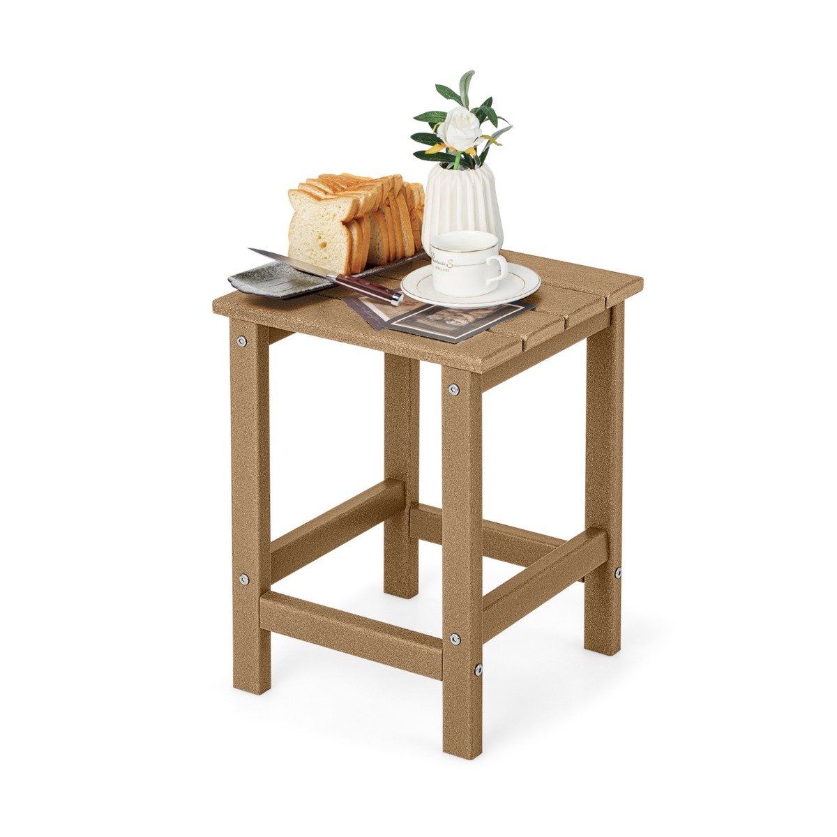 Šis lauko stalas puikiai dera su jūsų Adirondack kėdėmis, suteikdamas patogią atramą jūsų reikmenims. Pagamintas iš aukštos kokybės HDPE medžiagos, jis yra atsparus oro sąlygoms, blukimui, saulės spinduliams ir vandeniui, todėl puikiai tinka įvairioms lauko sąlygoms. Be to, nereikalauja dažymo ar specialios priežiūros – tiesiog nuvalykite vandeniu ir muilu.