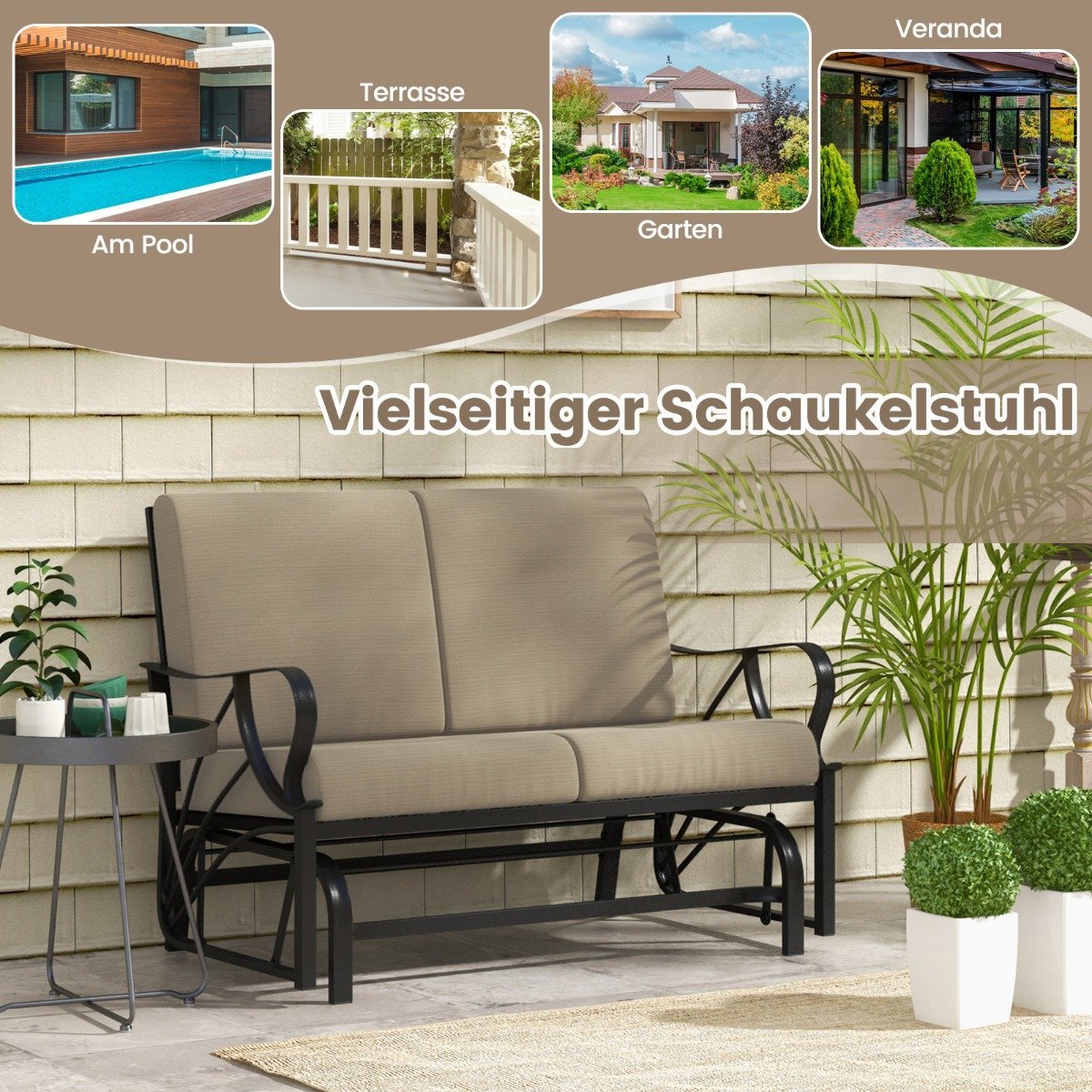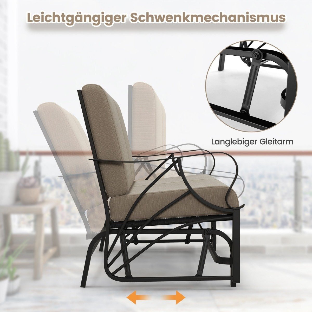 Mėgaukitės poilsiu lauke su šia patogia ir stilinga lauko supamąja kėde. Jos tvirta konstrukcija ir ergonomiškas dizainas užtikrina ilgalaikį komfortą, o raminantis supimosi judesys padės visiškai atsipalaiduoti.