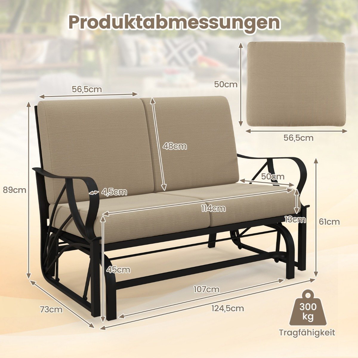 - Bendras dydis: 124,5 x 89 x 73 cm (Ilgis x Plotis x Aukštis)
