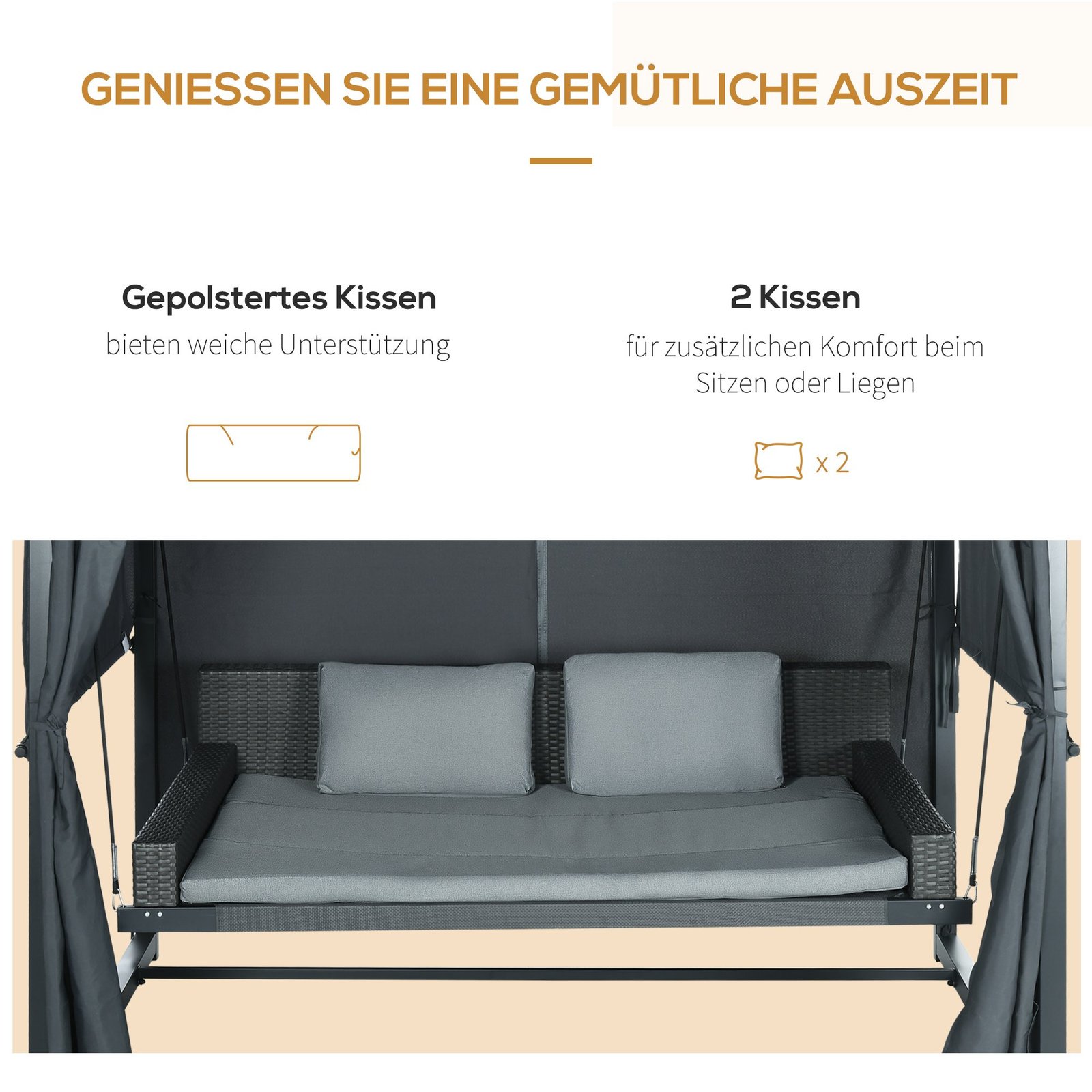 Lauko sūpuoklės su šezlongu ir pavėsine iš PE rotango su užuolaidomis