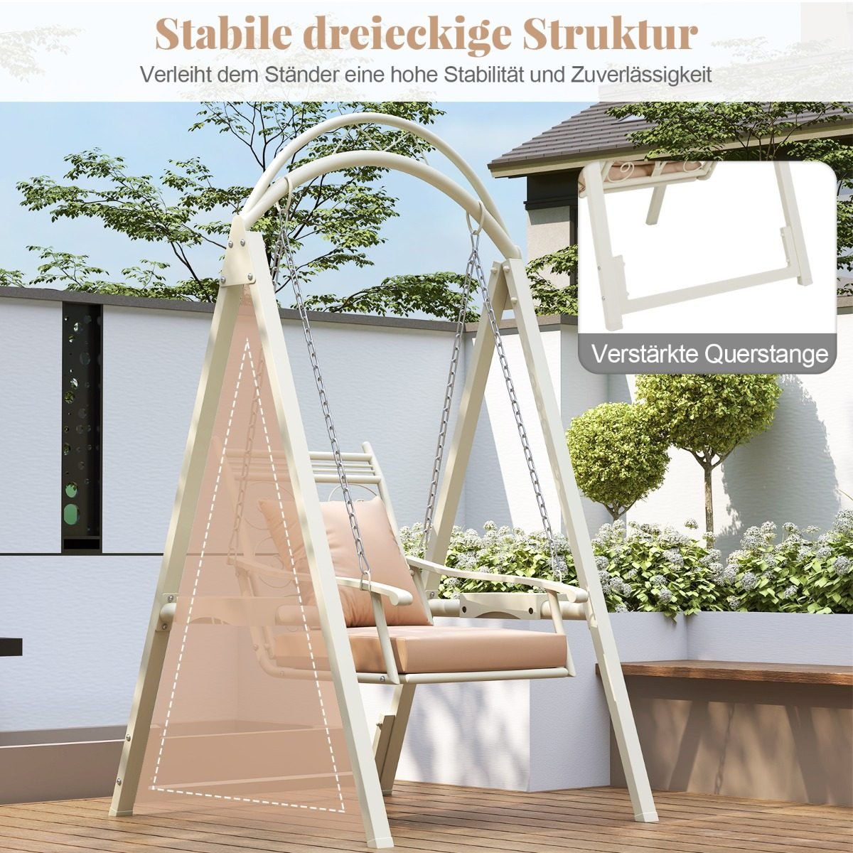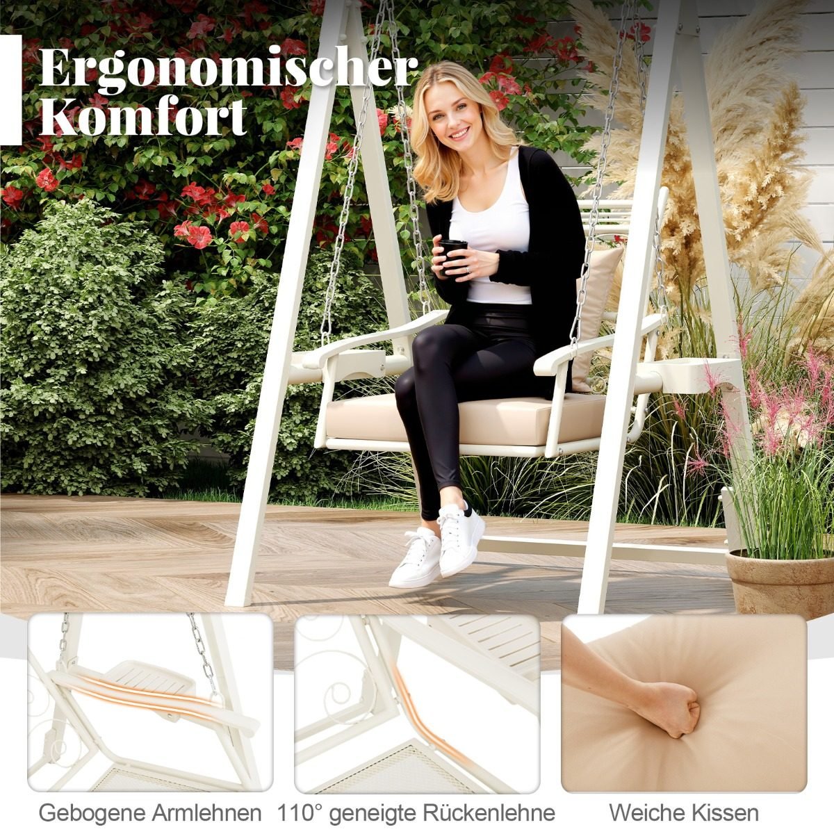 Lauko supynės su metaliniu rėmu ir patogiais čiužiniais (Balta)