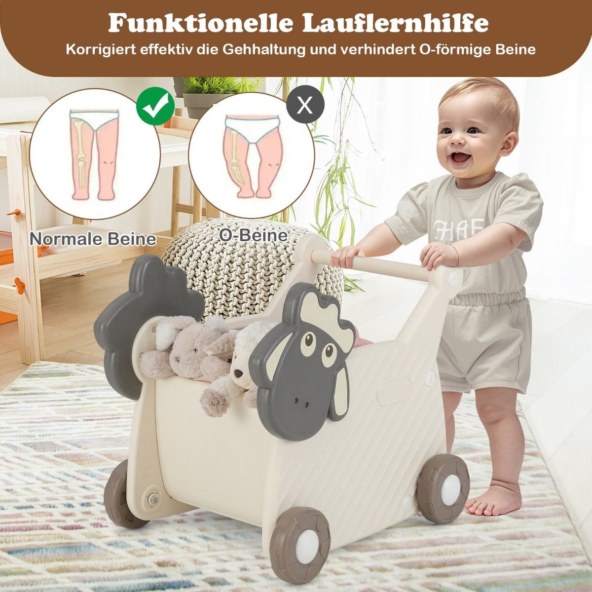 Padovanokite vaikui džiaugsmo ir palaikymo vystantis su šiuo universaliu mokomuoju vežimėliu. Jis ne tik padeda žengti pirmuosius žingsnius, bet ir suteikia pramogos žaidžiant „apsipirkimą“. Dėl didelės 18 litrų talpos jis puikiai tiks žaislams, knygoms ar kitiems daiktams laikyti, padėdamas palaikyti tvarką namuose.