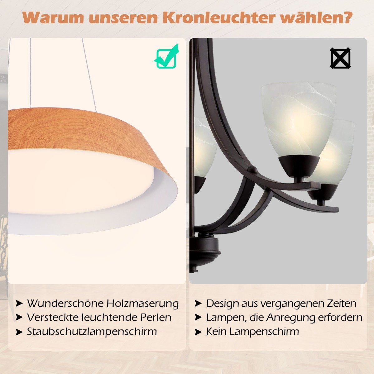 - Stilingas dizainas su medžio imitacijos raštu.