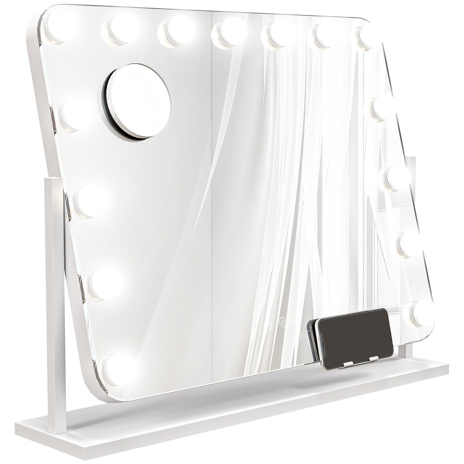 Su 15 LED lempučių, kurios šviečia iki 50 000 valandų, ir telefono laikikliu, skirtu makiažo patarimams žiūrėti, grožio rutina su apšviestu makiažo veidrodžiu taps paprasta. Trys apšvietimo režimai ir reguliuojami ryškumo nustatymai suteiks jums ryškų, tobulai apšviestą veidrodinį atspindį bet kokioje apšvietimo situacijoje. Be to, praktiškas veidrodžio su apšvietimu USB prievadas užtikrina, kad jūsų išmanusis telefonas galėtų krautis lygiagrečiai.