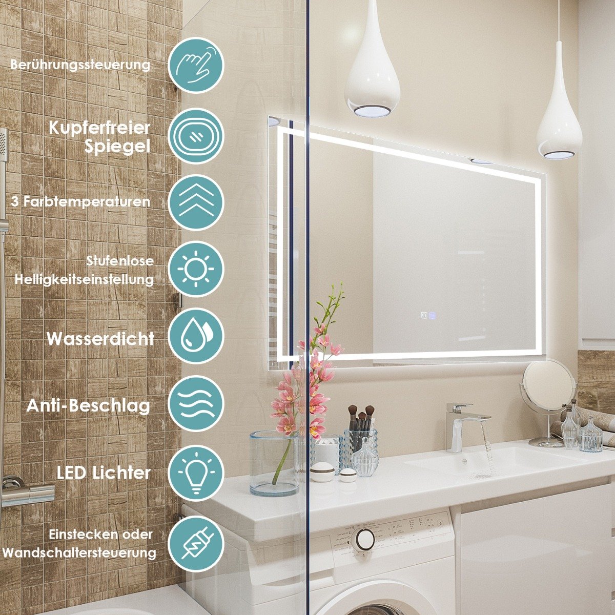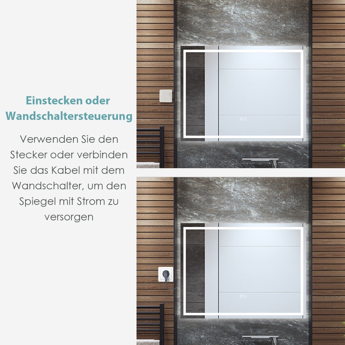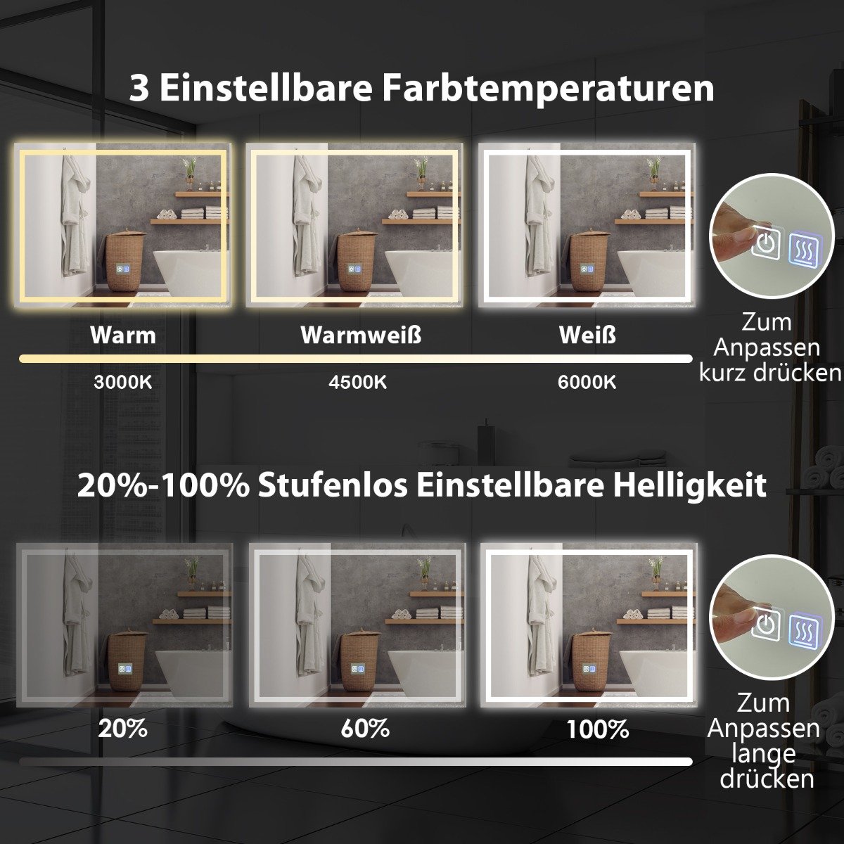 LED vonios veidrodis 80 x 60 cm su reguliuojamu ryškumu ir spalvos temperatūra (Sidabrinė)