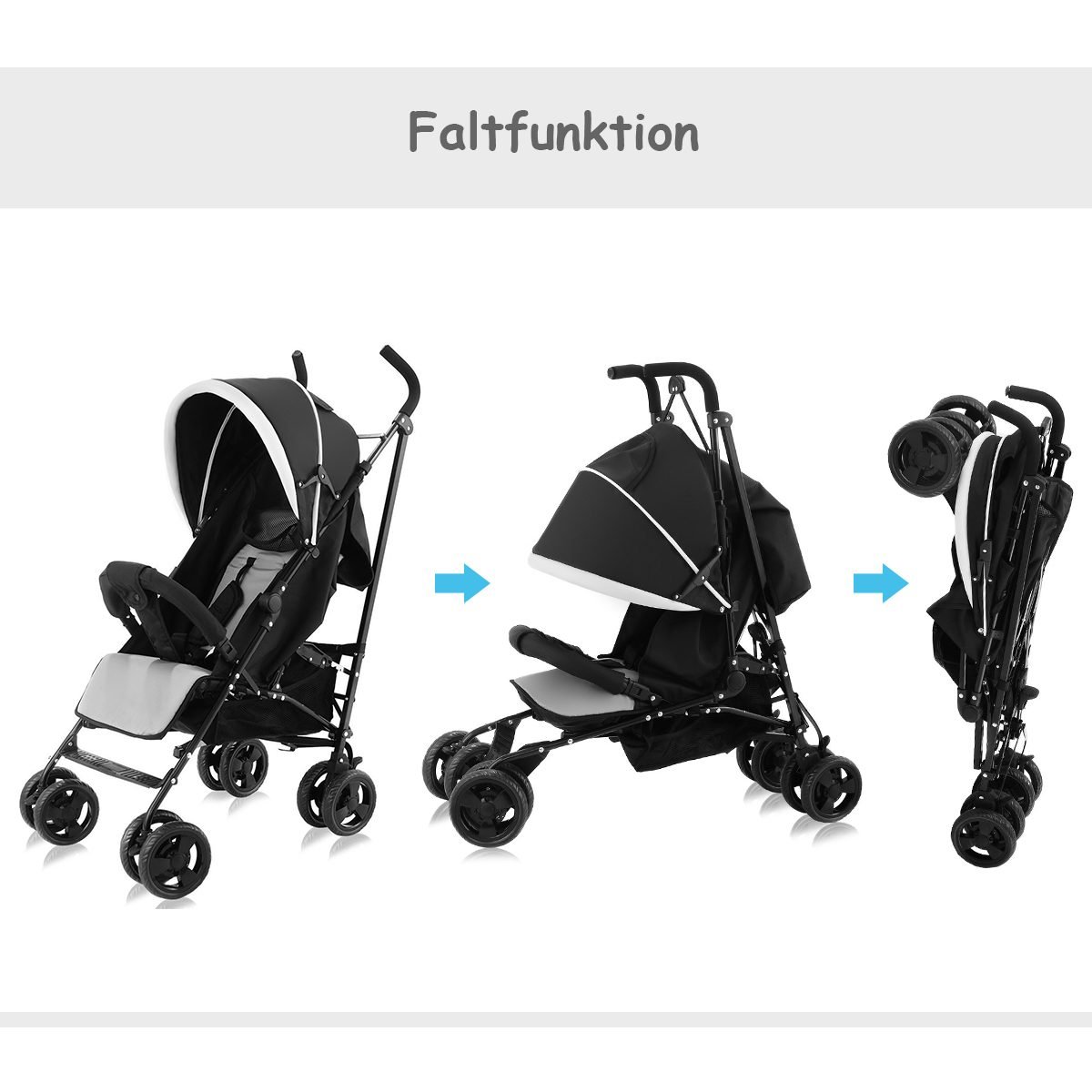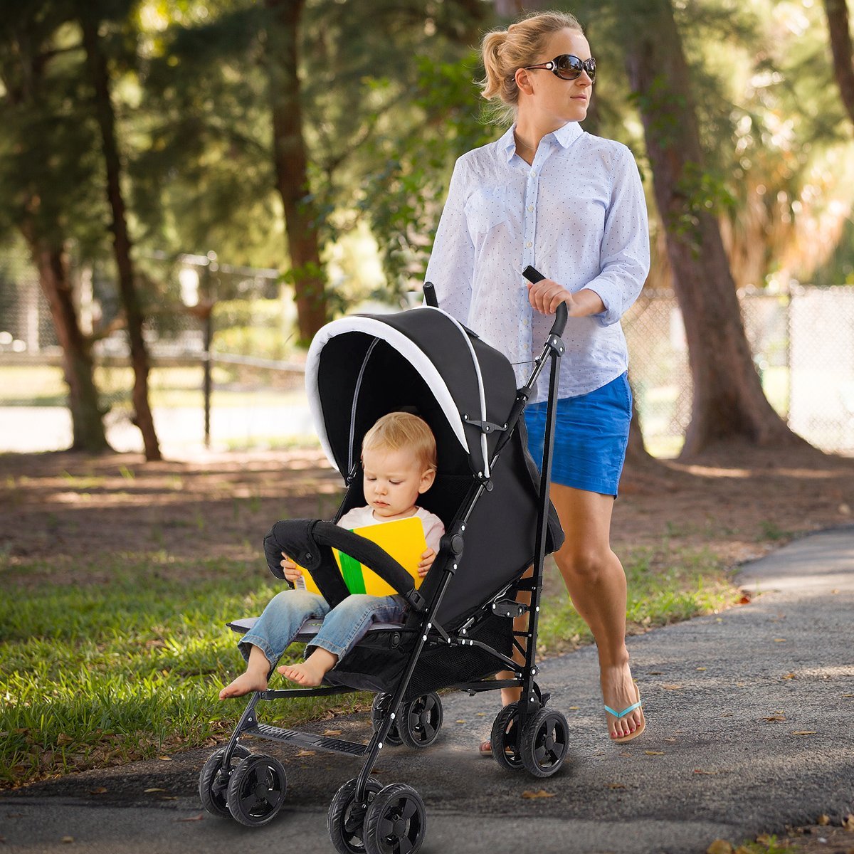 Lengvas ir sulankstomas vaikiškas vežimėlis-skėtukas (Juoda)