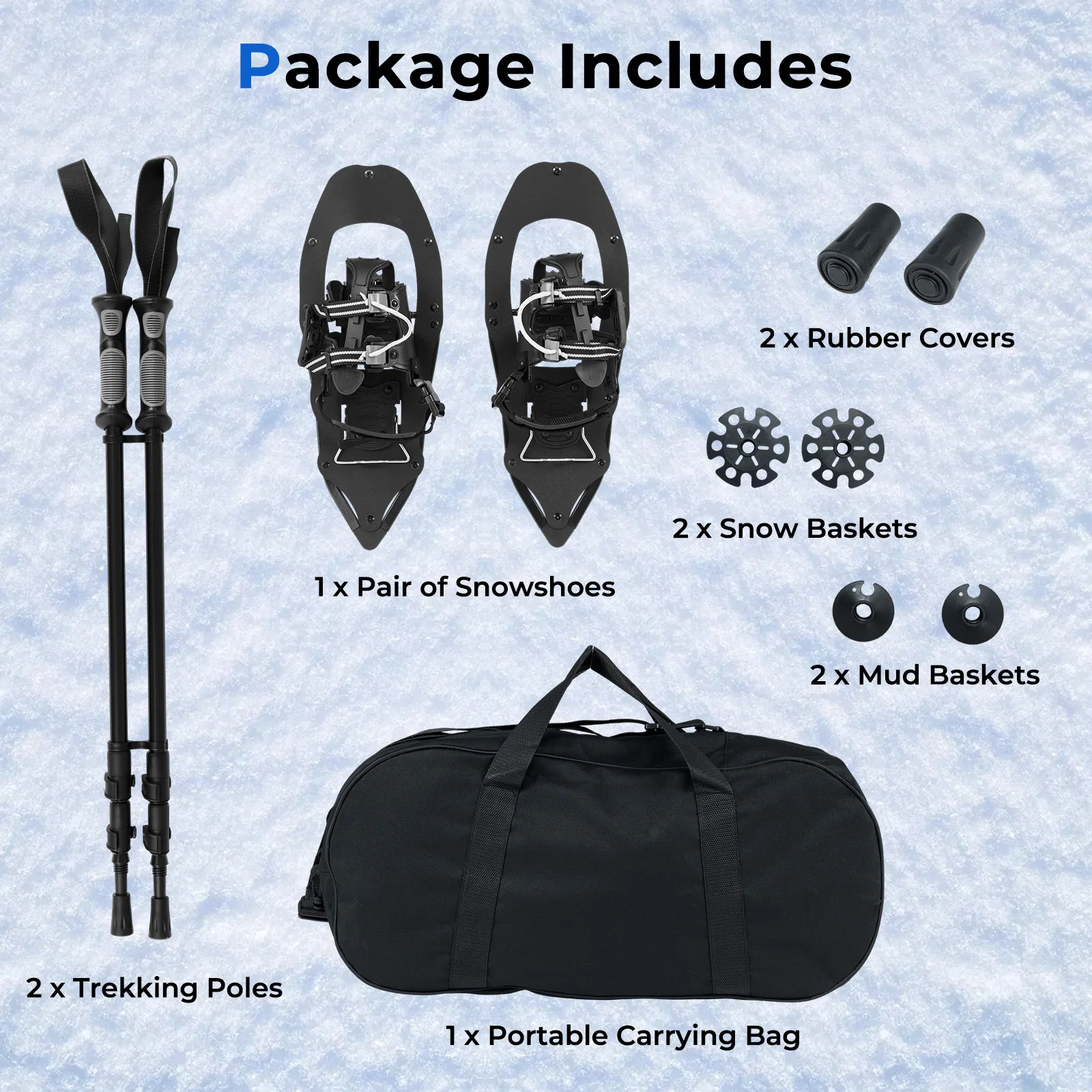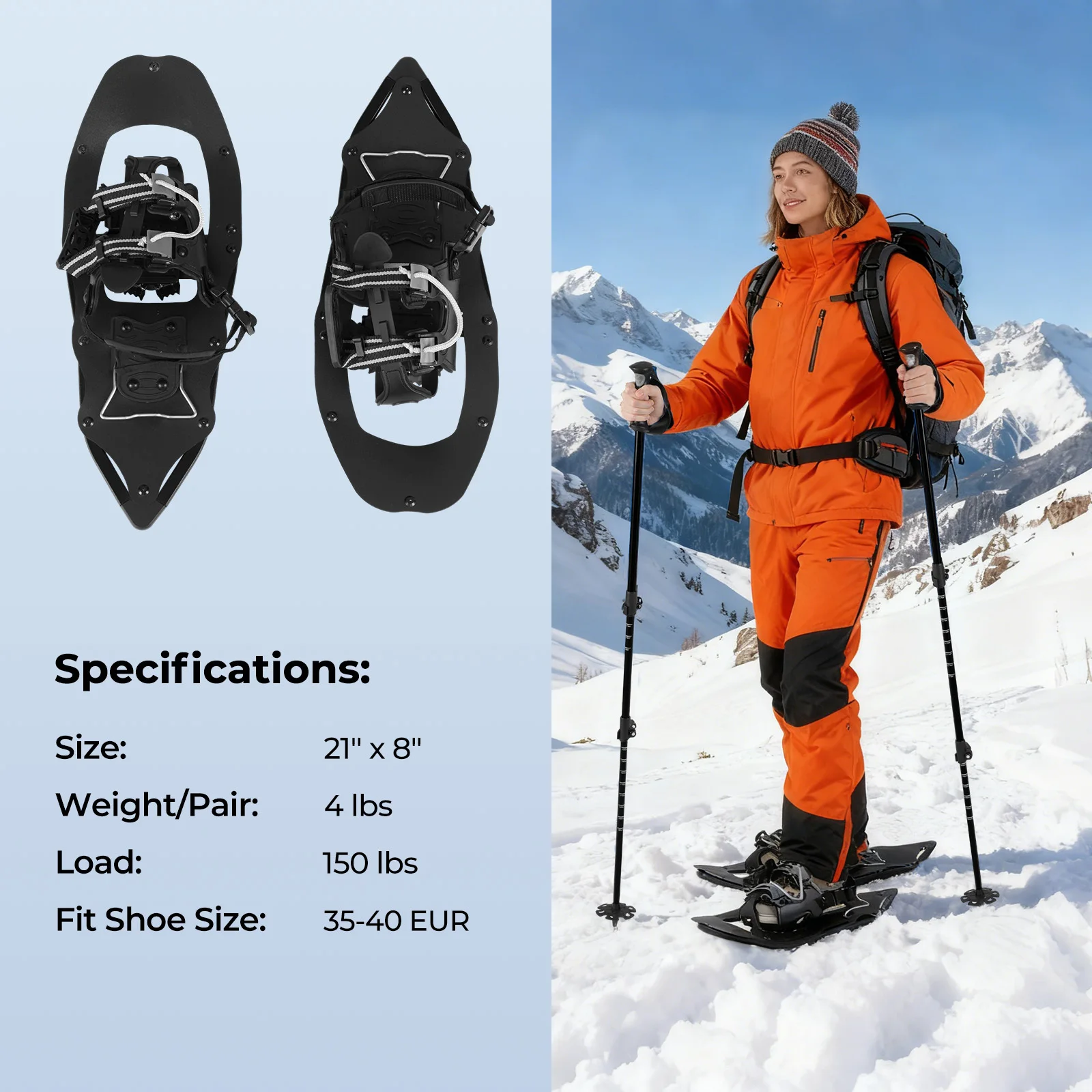 Lengvas sniegbačių komplektas su trekingo lazdomis (Juoda)