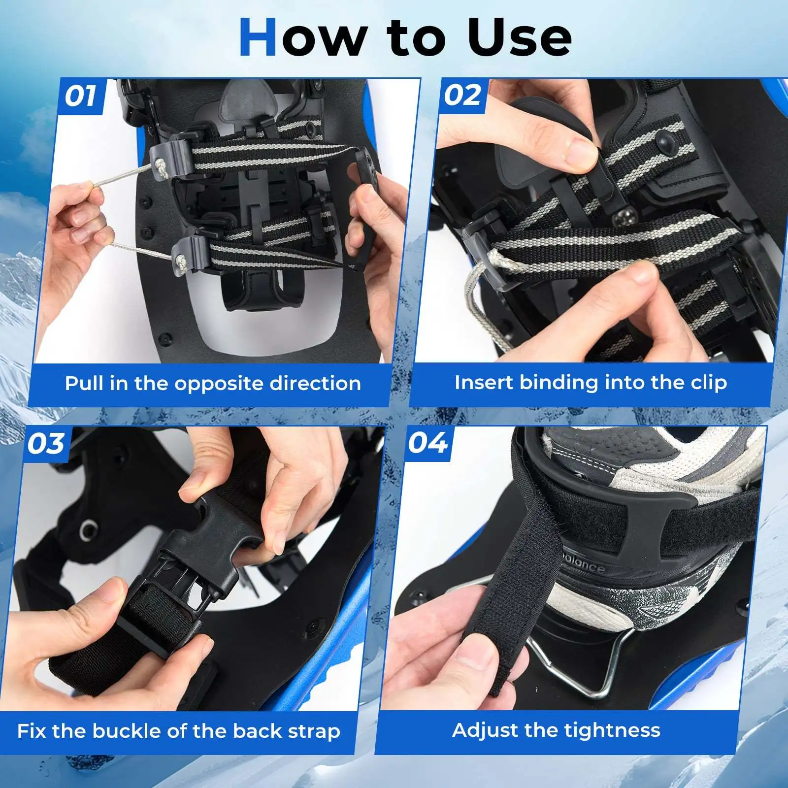 Lengvas sniego batų rinkinys su reguliuojamomis žygio lazdomis (Mėlyna)