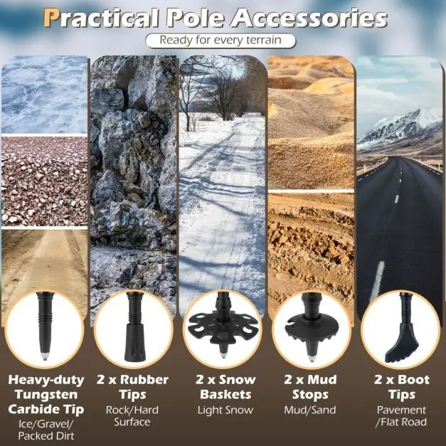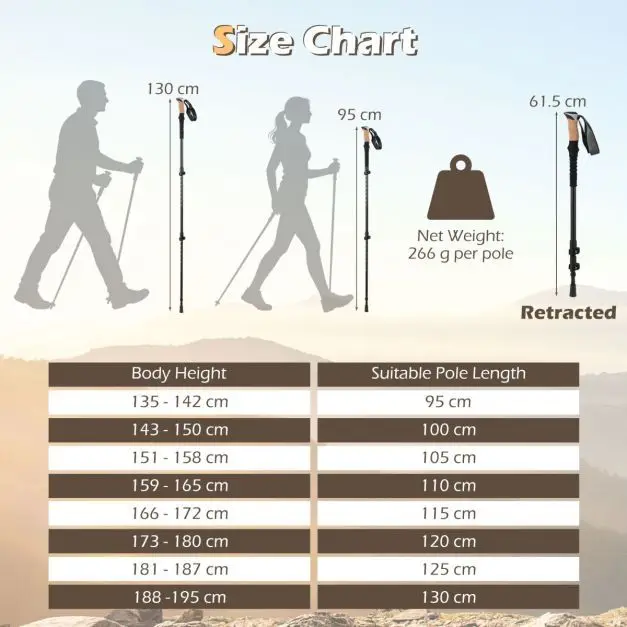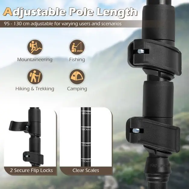 • Lengvai reguliuojamas ilgis nuo 95 cm iki 130 cm, tinkančios įvairaus ūgio keliautojams.