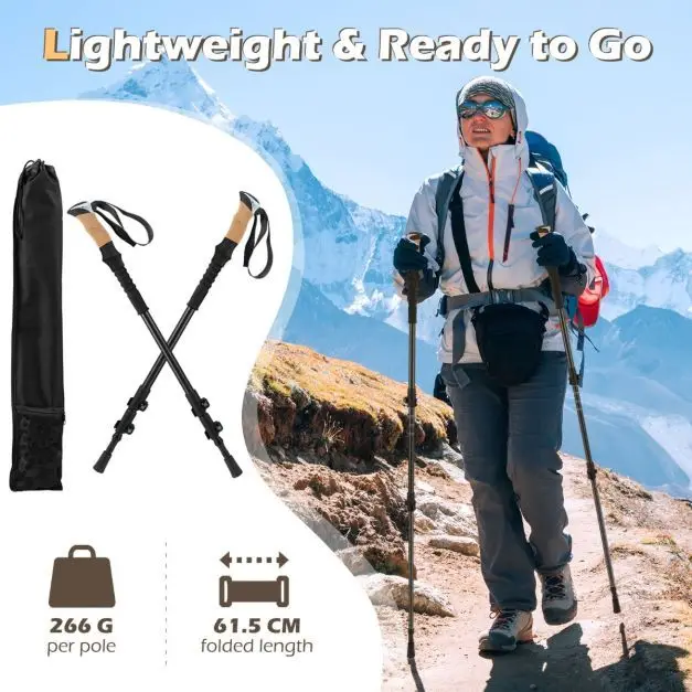 • Itin lengvos, sveriančios tik 266 g viena lazda, sumažinančios nuovargį ilgų žygių metu.