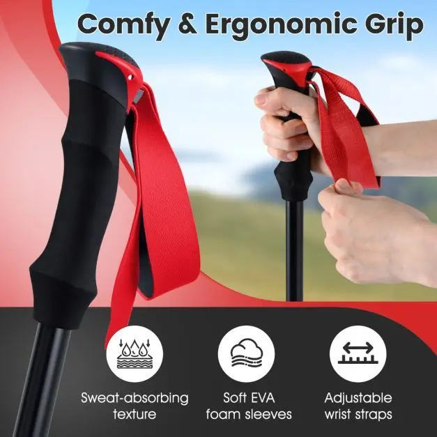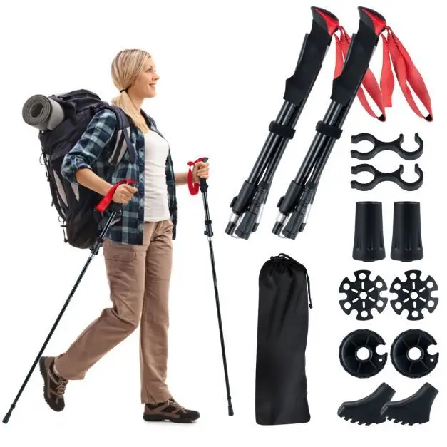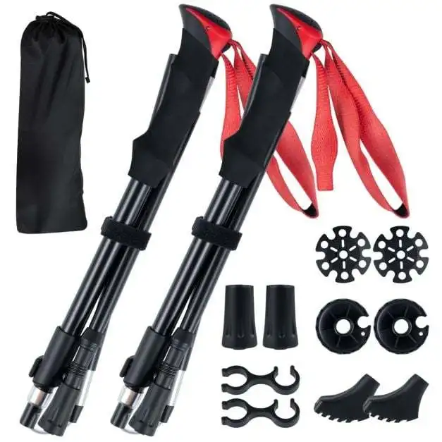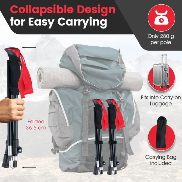 Lengvos sulankstomos žygio lazdos su greito užrakto sistema (Raudona)