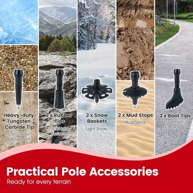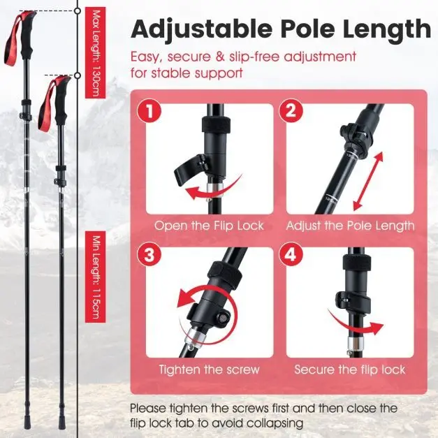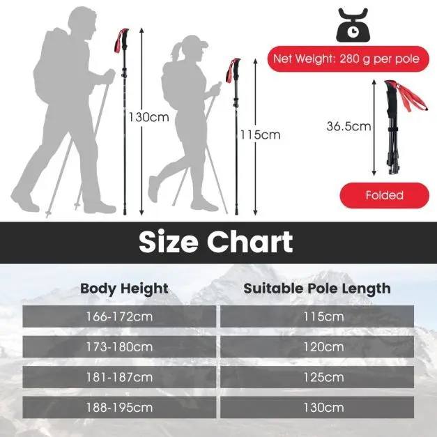 - Ypač kompaktiškos ir lengvos: Trijų dalių sulankstomas dizainas leidžia lazdeles sulankstyti vos iki 36,5 cm akimirksniu. Kiekviena lazda sveria tik 280 g, efektyviai sumažindama rankų nuovargį ilgų žygių metu.