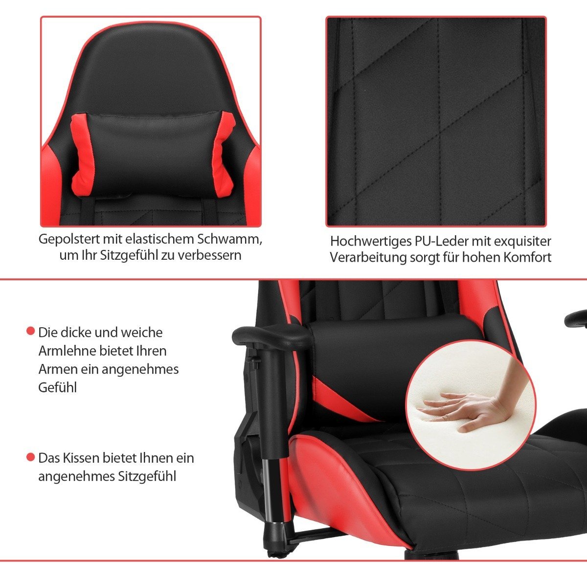 Lenktyninio stiliaus žaidimų kėdė su reguliuojamu atlošu ir atramomis (Raudona)