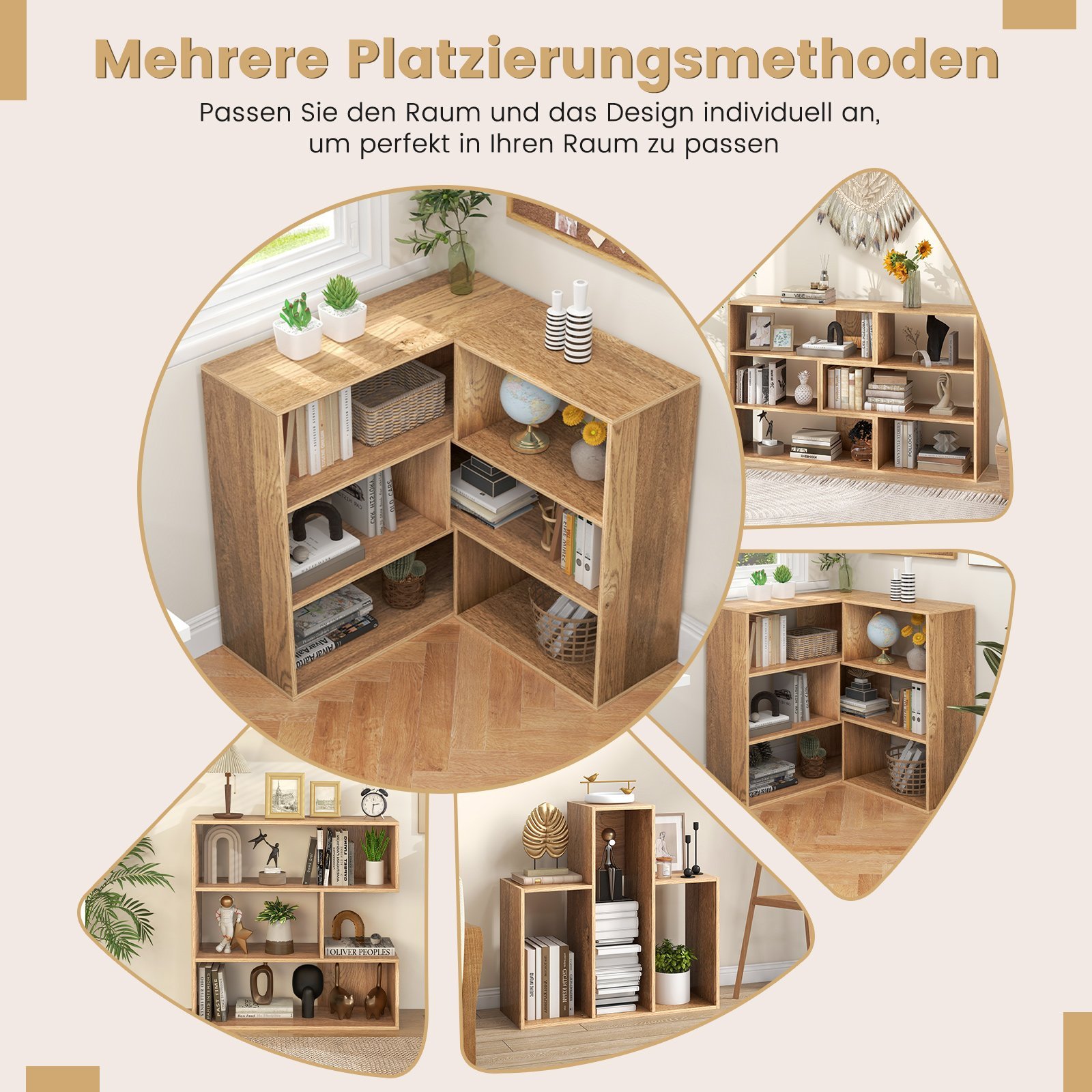 Ši unikali lentyna išsiskiria išgaubta ir įgaubta geometrine forma, suteikdama jūsų interjerui modernumo ir šarmo. Su trimis skirtingo dydžio atviromis lentynomis ji siūlo praktišką daiktų laikymo ir eksponavimo sprendimą. Pagaminta iš patvarios medienos drožlių plokštės ir aprūpinta apsauga nuo apvirtimo, ši lentyna yra patikima ir ilgaamžė.