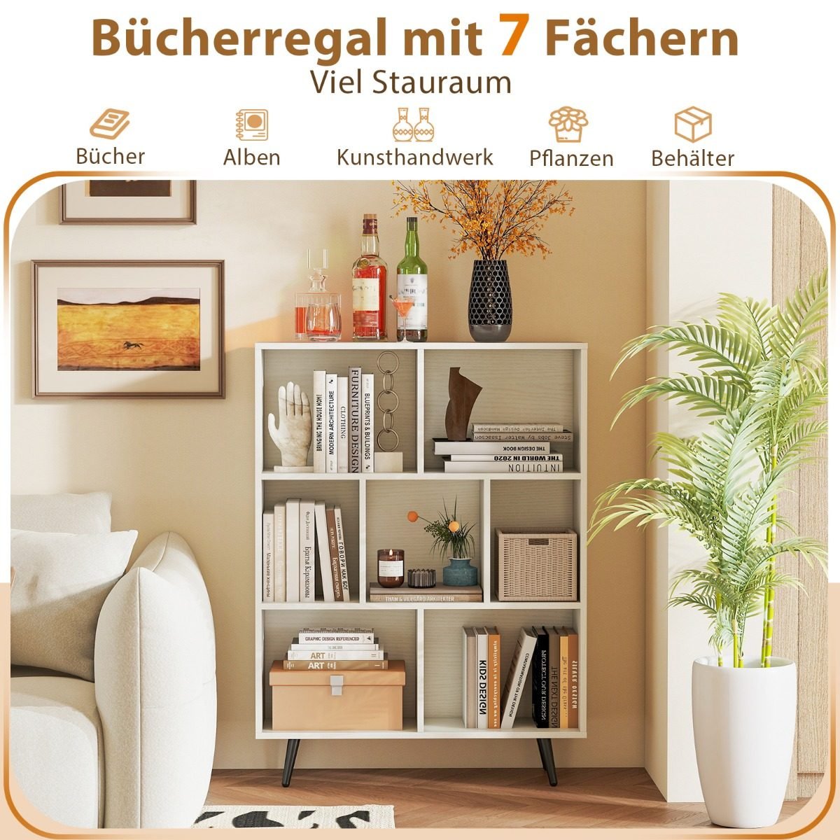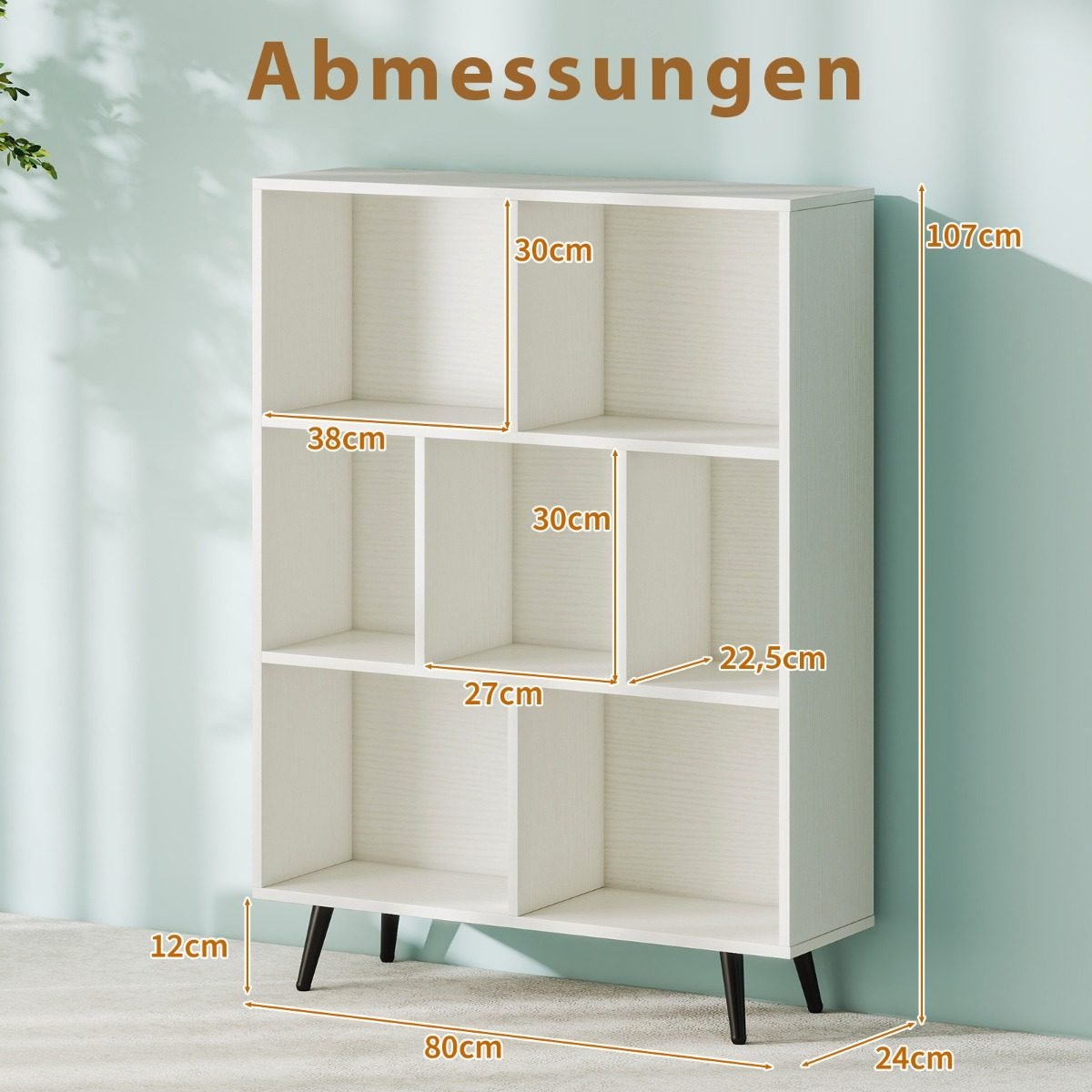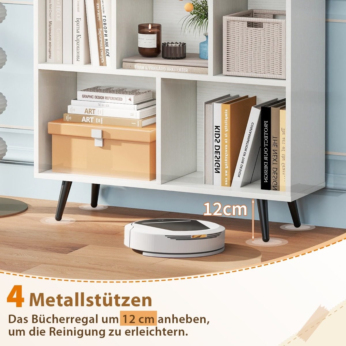 - Galima rinktis iš 7, 8 arba 10 talpių skyrelių knygoms, dekoracijoms ir kitiems daiktams laikyti.