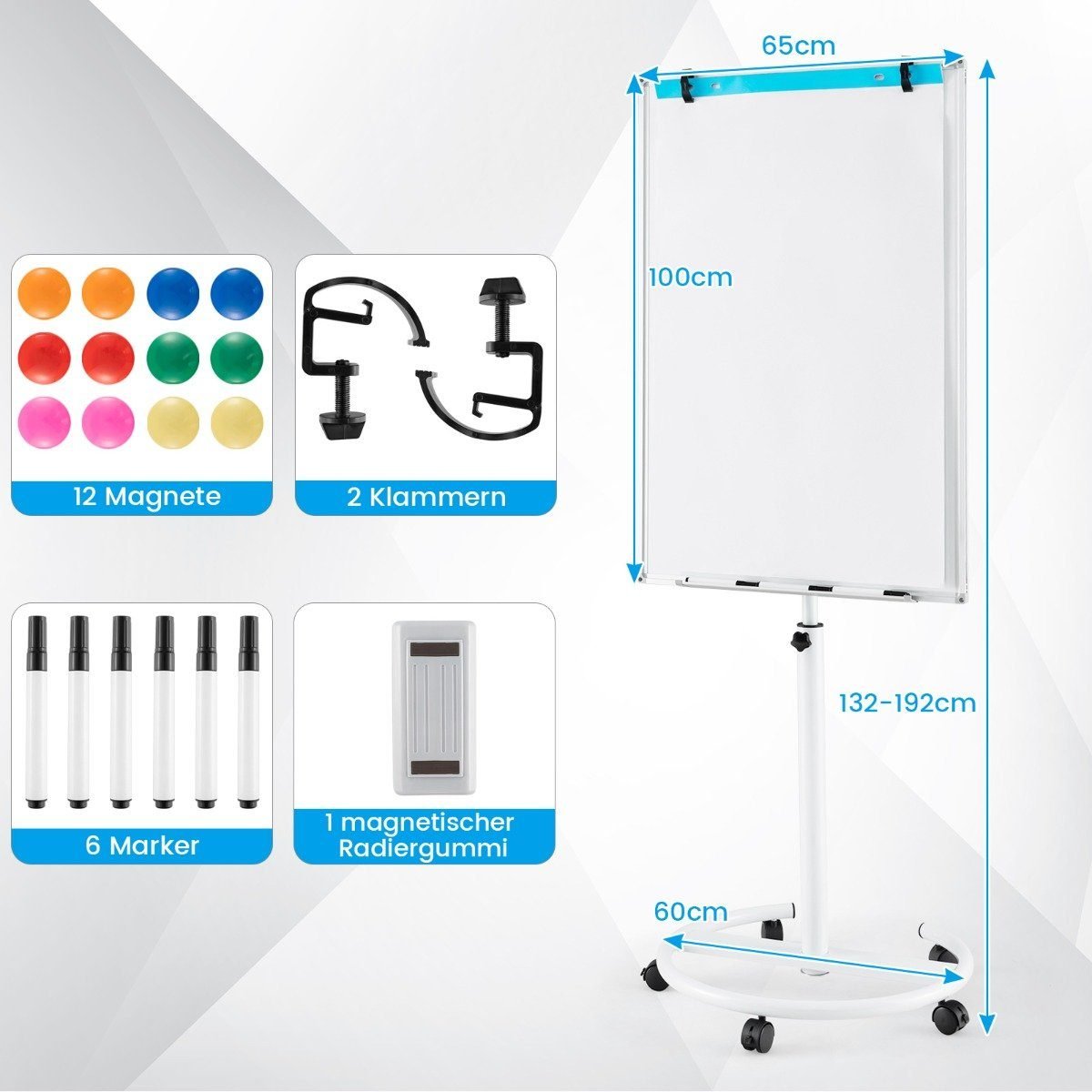 Magnetinė rašomoji lenta ant ratukų su aukščio reguliavimu (Balta)