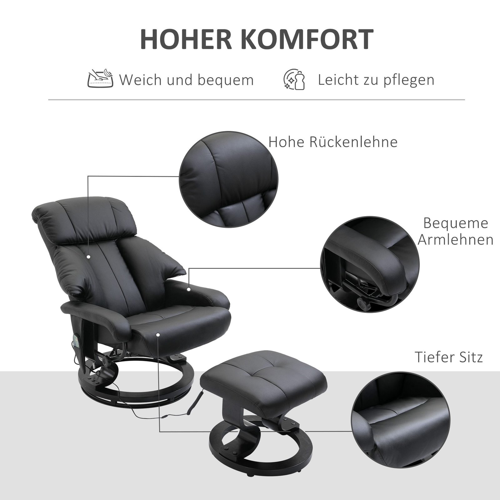 Masažinis krėslas su pufu, 10 vibravimo taškais ir 145° reguliuojamu atlošu