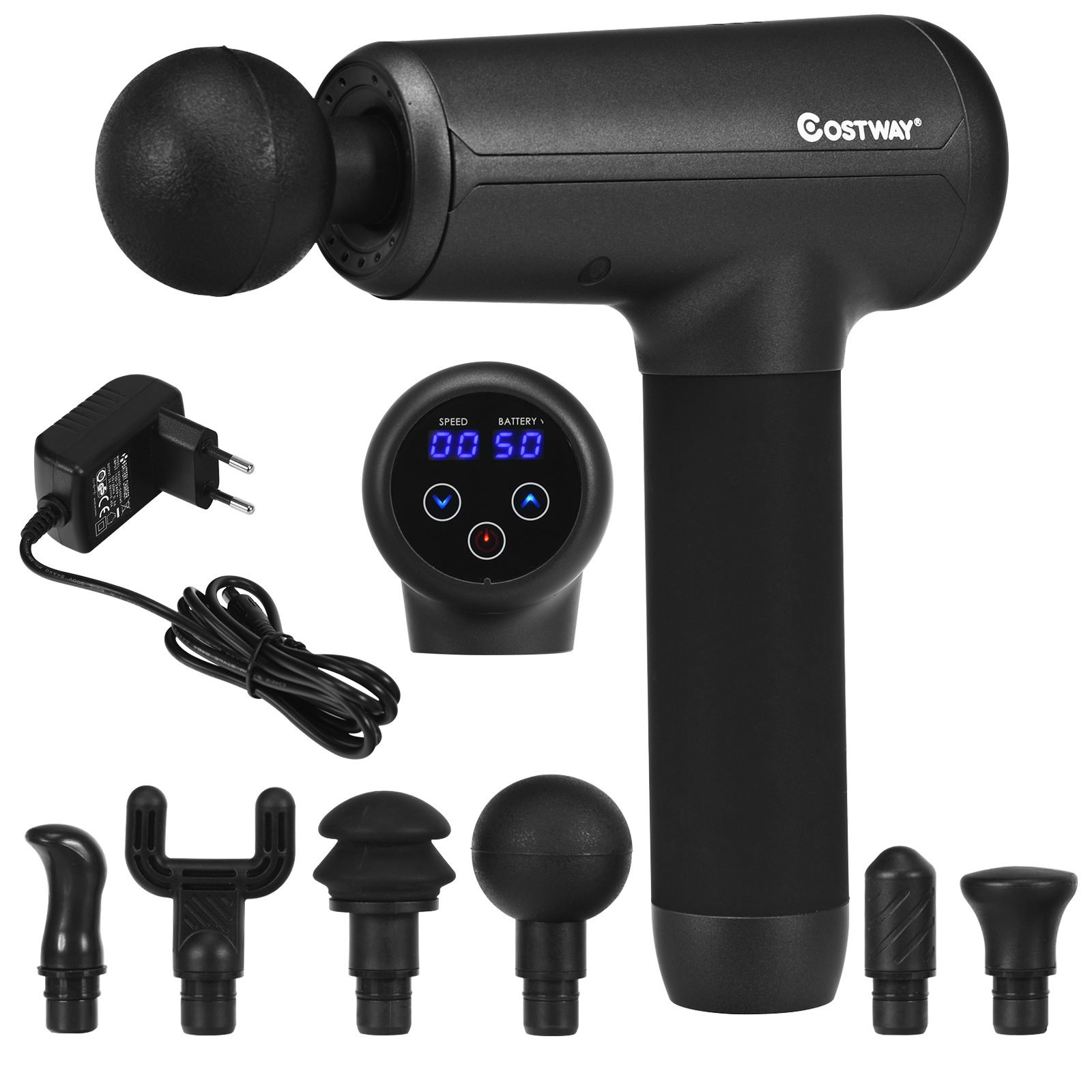 Masažinis pistoletas su 20 greičio lygių ir 6 galvutėmis (Juoda)