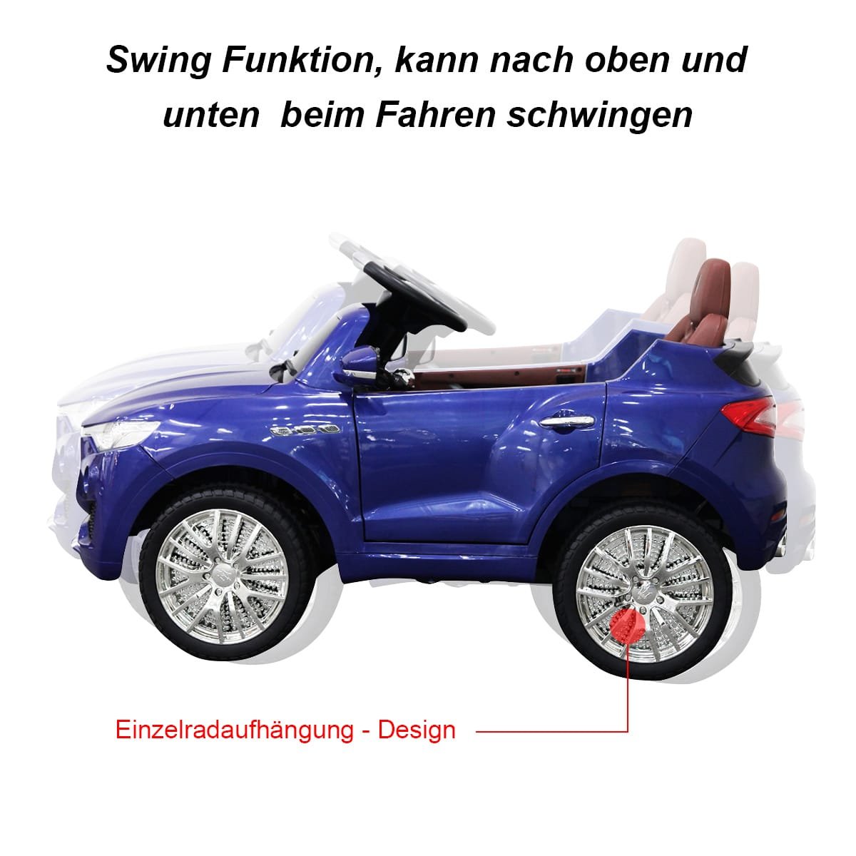 - Papildomos funkcijos: Lėto starto funkcija, nepriklausoma ratų pakaba, atidaromos durys, realistiški garsai, multimedijos sistema (Bluetooth, radijas, USB, MP3), sūpynės funkcija.
