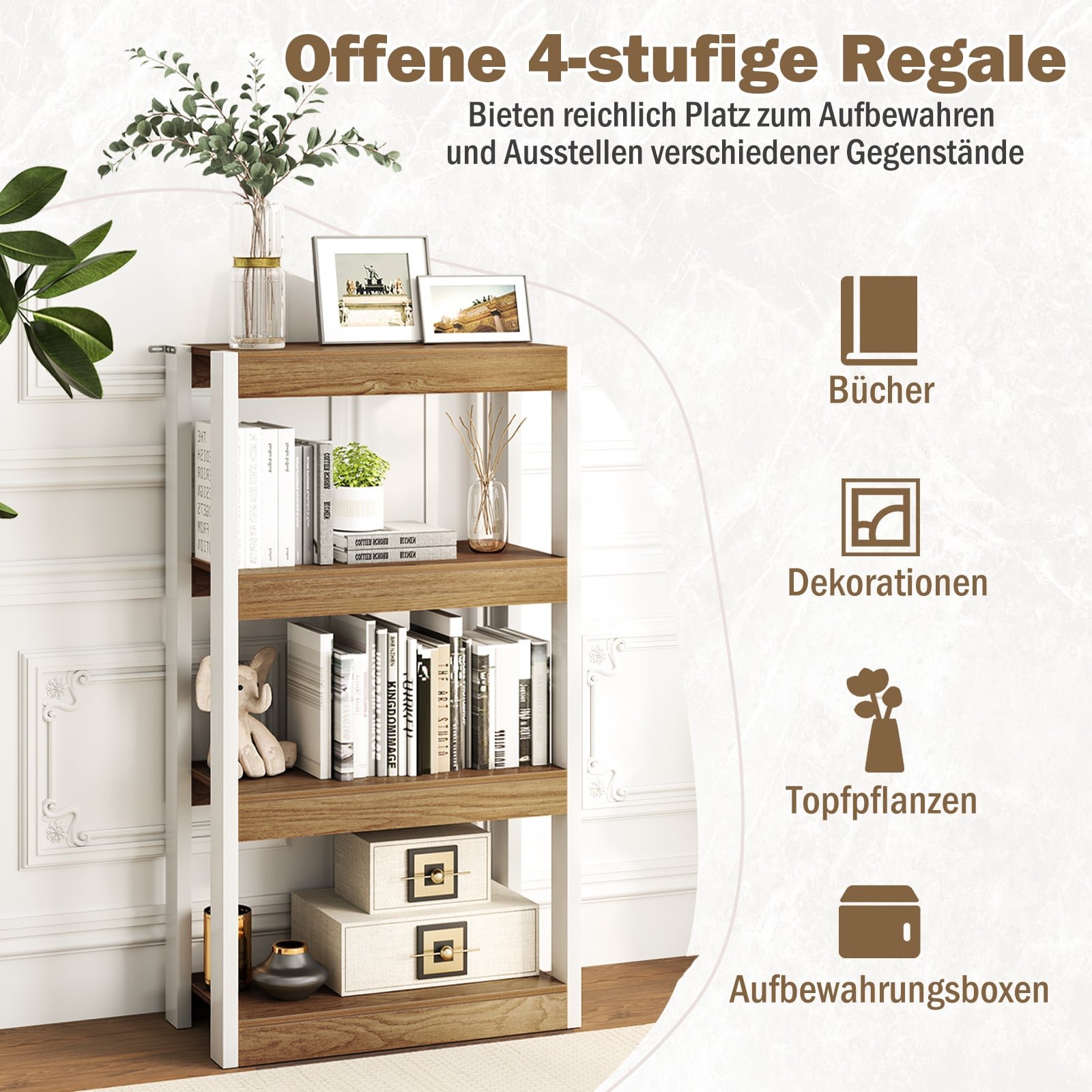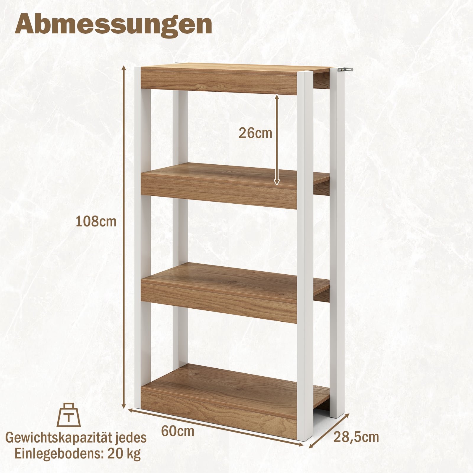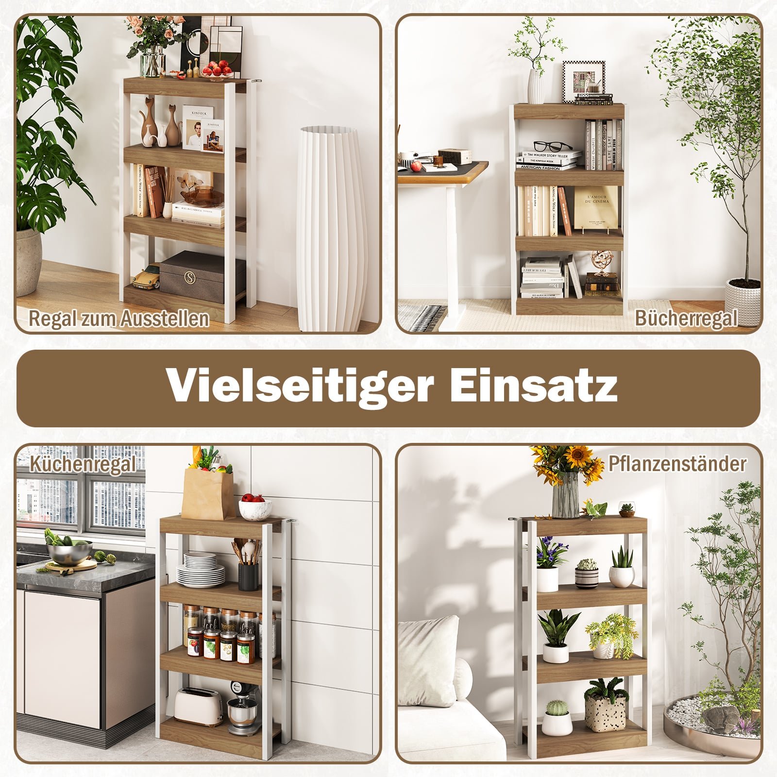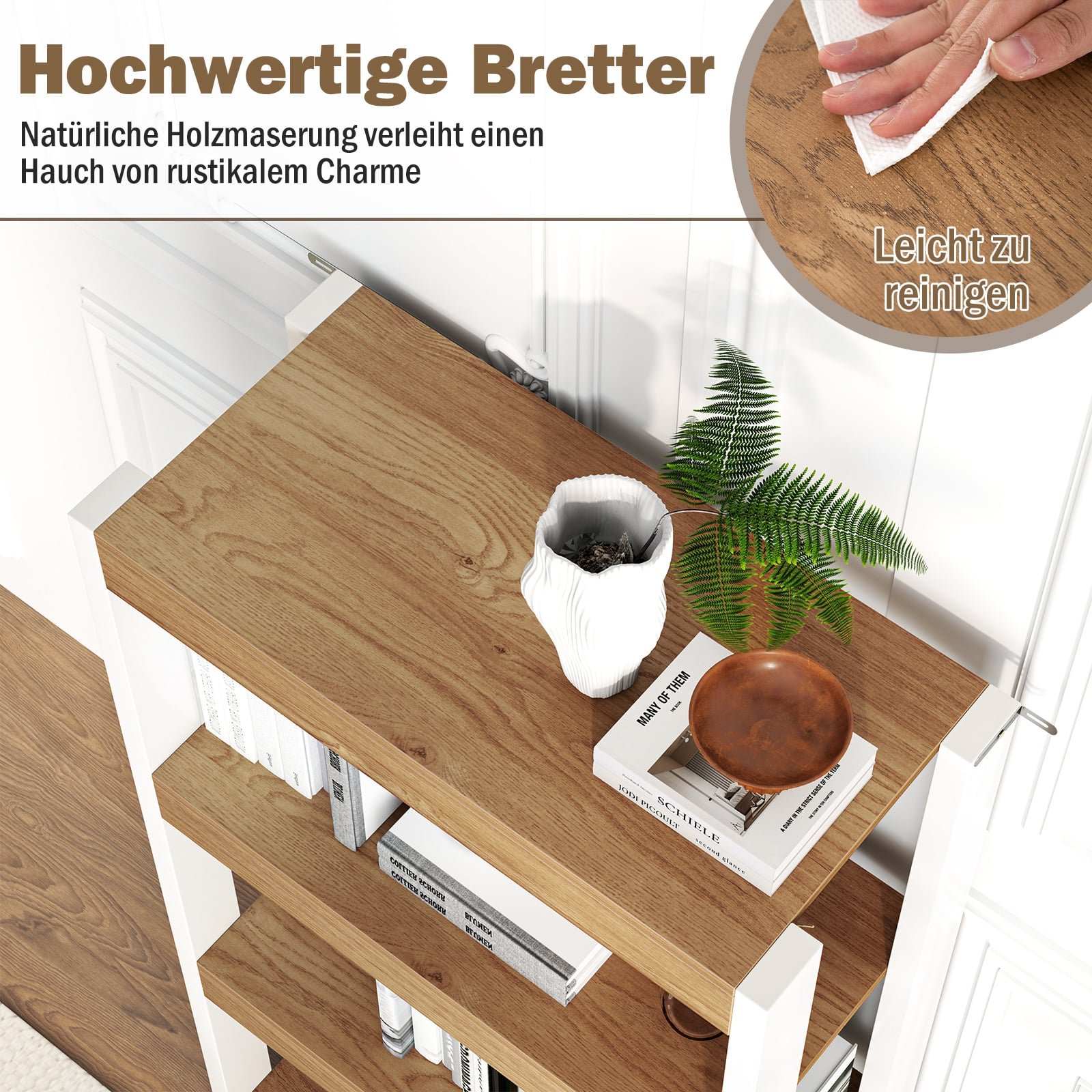 Ši tvirta medinė lentyna su 4 erdviomis lentynomis yra puikus sprendimas jūsų knygoms, nuotraukoms ir dekoracijoms. Patvari medienos konstrukcija ir dviguba apsauga nuo apvirtimo užtikrina stabilumą ir saugumą. Elegantiškas dizainas su paslėptais varžtais ir lengvai prižiūrimas paviršius garantuoja estetiškumą ir ilgaamžiškumą. Naudokite ją kaip knygų lentyną, augalų stovą ar virtuvės lentyną – ji puikiai derės bet kurioje patalpoje.
