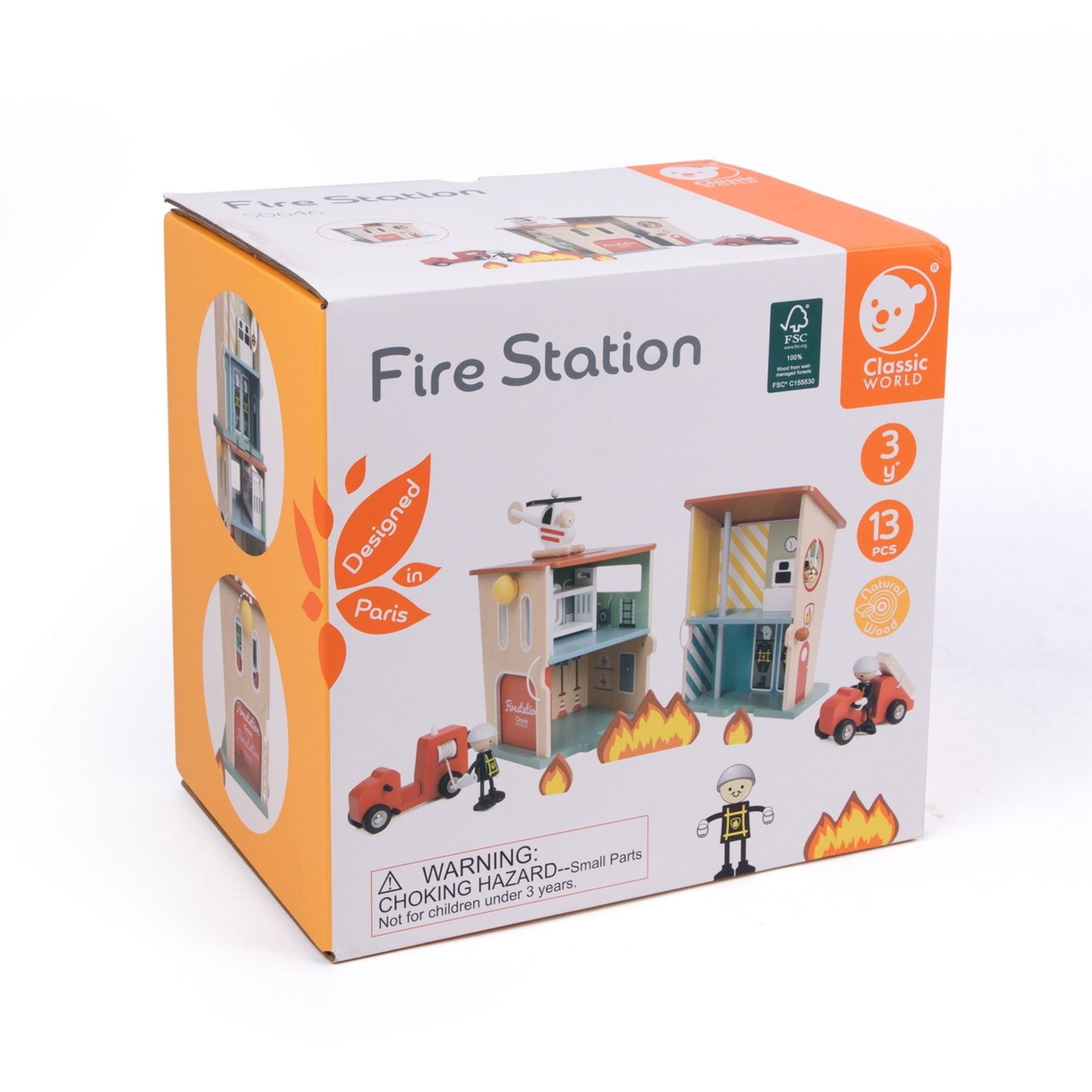 Classic World medinis gaisrinės stoties rinkinys, susidedantis iš 13 dalių, įtrauks jūsų vaiką į drąsių ugniagesių pasaulį ir įdomias gelbėjimo operacijas. Pagamintas iš natūralaus medžio, žaislas išsiskiria kokybe ir detalių kruopštumu. Gaisrinės stoties dizainas, sukurtas Paryžiuje, užtikrina išskirtinį stilių ir funkcionalumą. Įvairios konfigūracijos ir atidaromos durys leidžia vaikui laisvai kurti savo žaidimo scenarijus, naudojant visus rinkinio elementus. Šis žaislas lavina vaizduotę, kalbos įgūdžius ir smulkiąją motoriką, suteikdamas daug valandų kūrybiškų žaidimų.