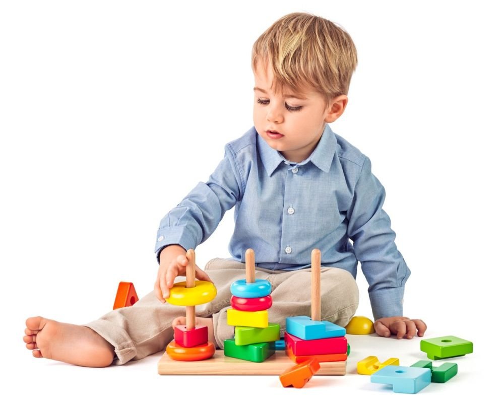 Medinė geometrinė dėlionė su 3 bokštais