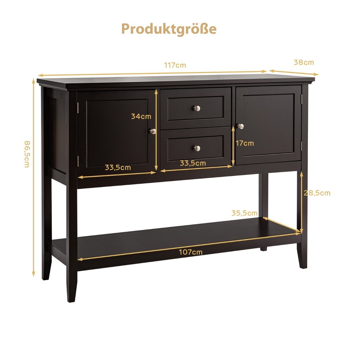 - Bendri matmenys: 117 x 38 x 86,5 cm (I x P x A)